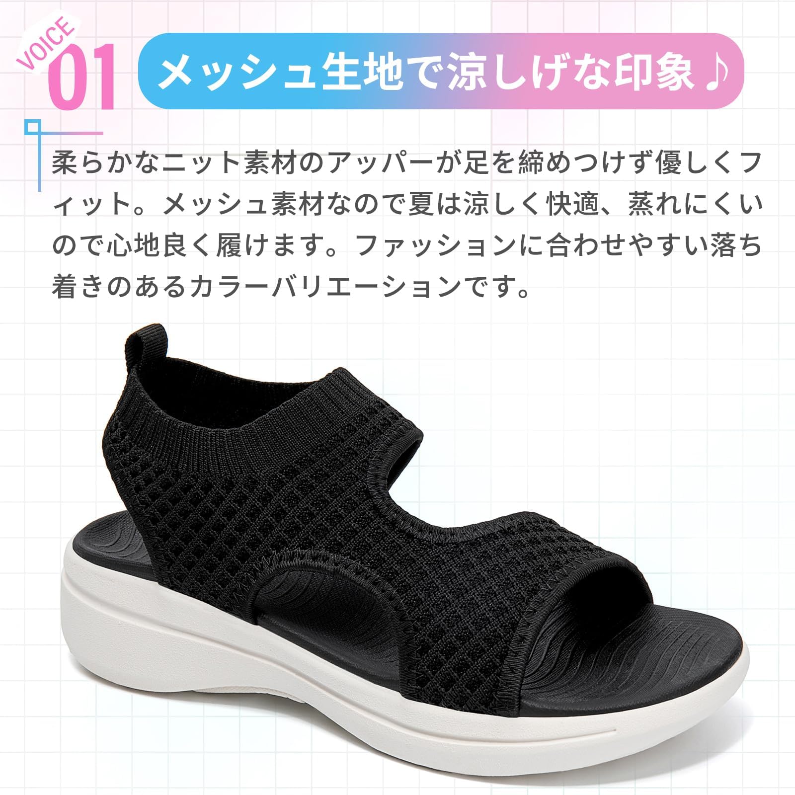 [STRDEOUT] レディース スポーツサンダル ニット メッシュ 夏 オフィス サンダル 歩きやすい 厚底 軽量 通気 ウォーキング オシャレ