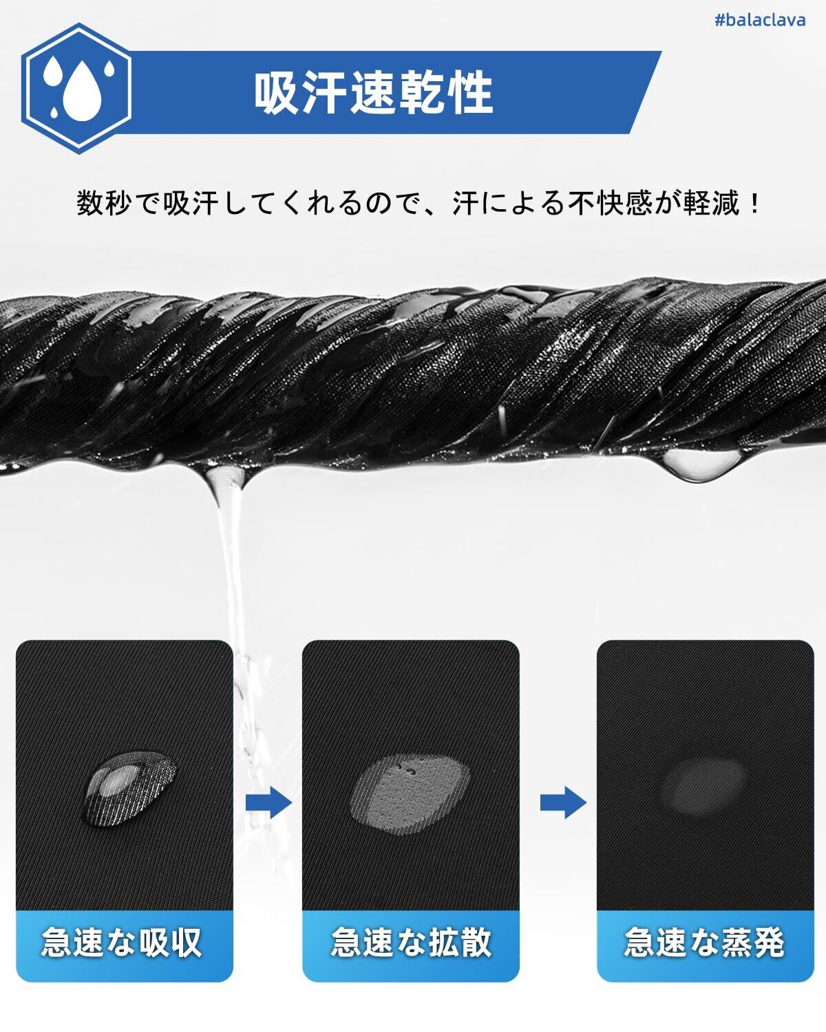 【接触冷感】春夏向けの冷感バラクラバにはさらっとした素材を採用し、接触した瞬間にひんやりと気持ちが感じられます。夏の暑さ対策として、炎天下でも快適な着け心地を実現してくれます。