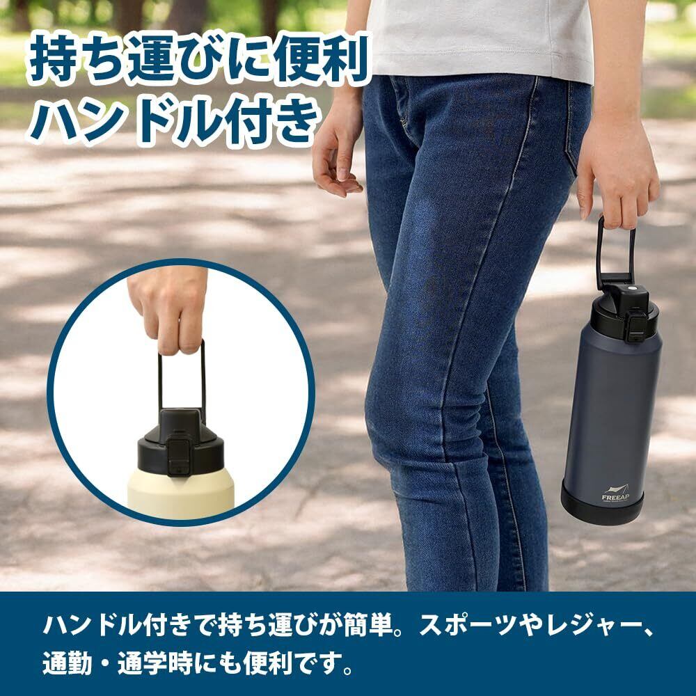 FREEAP 保冷 水筒 ワンタッチボトル 1.1リットル ワイド口径 洗いやすい アウトドア K-10883 (スモークネイビー)