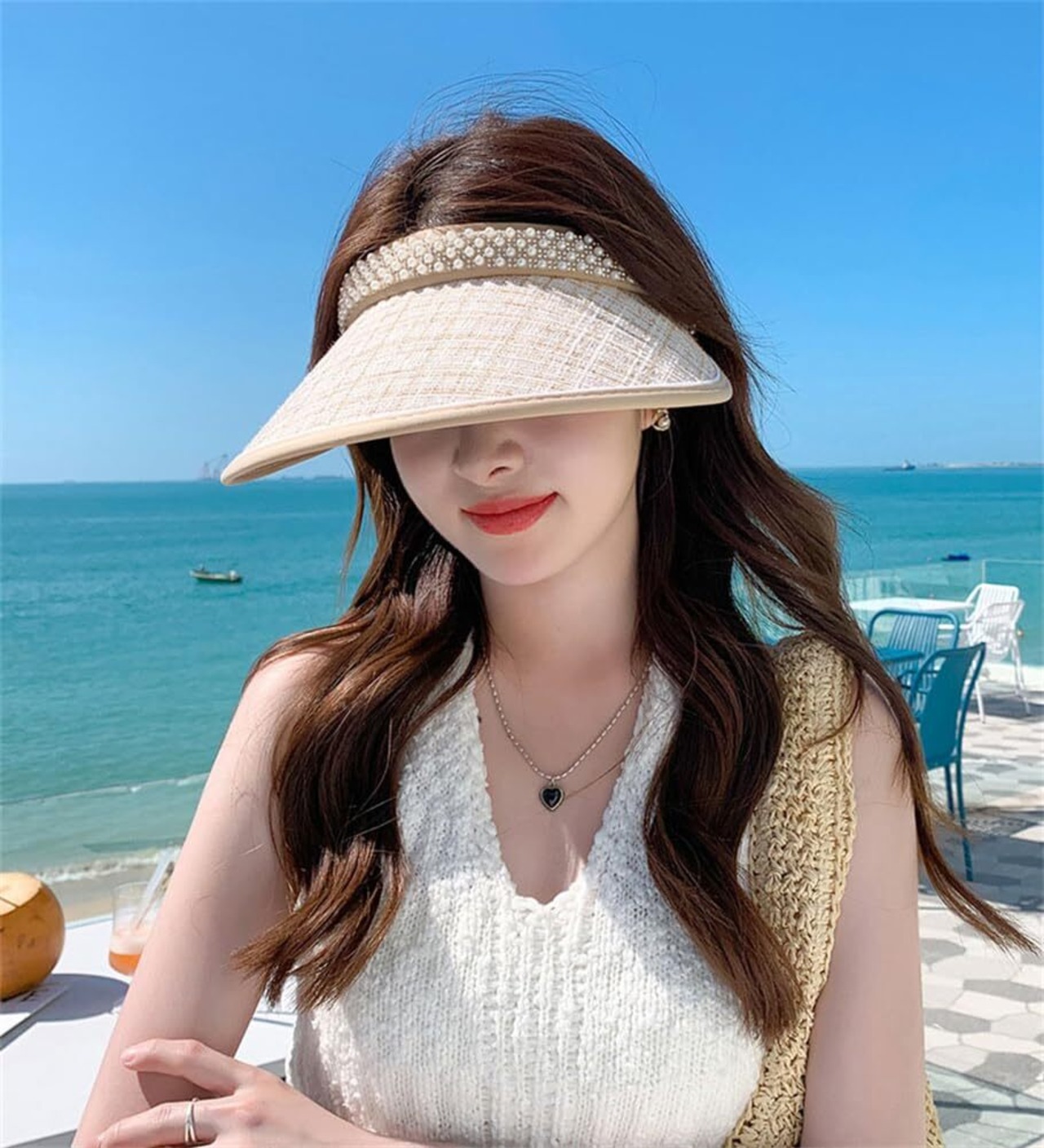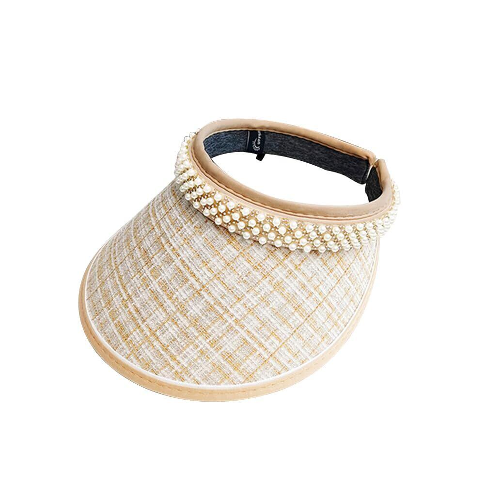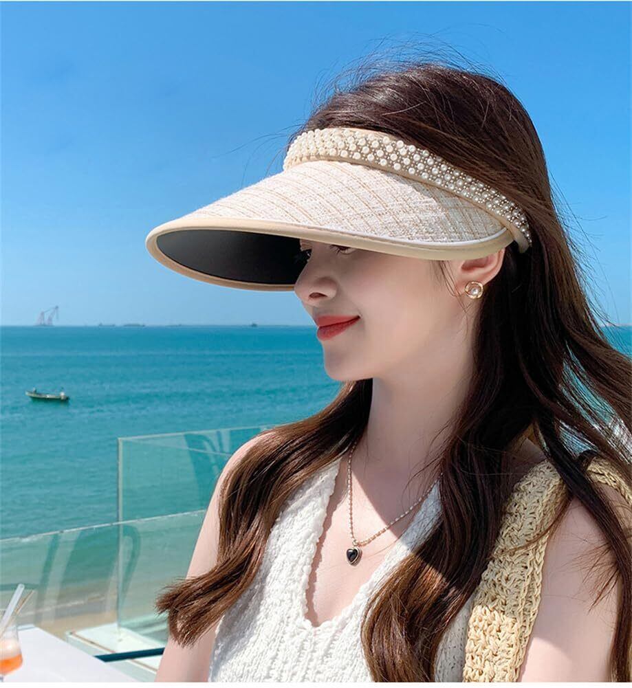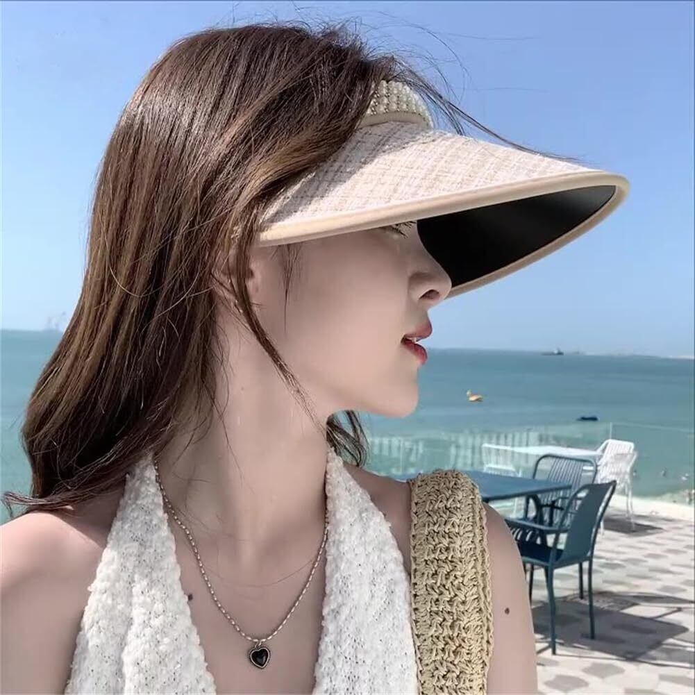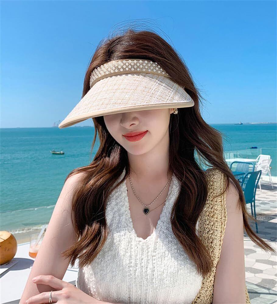 [LeafIn]サンバイザー レディース レディースバイザー 帽子 麦わら パール 日焼け防止 UVカット 紫外線対策 つば広 夏 可愛い 8433