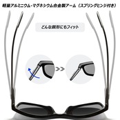【軽量素材コンビネーション】メンズサングラスはPCフレームとマグネシウムアルミ合金テンプルを採用し、超軽量22gを実現。サングラスの耐久性をすると同時に、着用時の快適性を両立させています