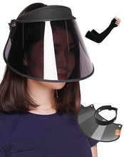 [GOKEI] 薄くなる サンバイザー レディース アームカバー付き uvカット ひよけ帽子 自転車 さんばいざー 紫外線対策 日除け帽子 日焼け対策 UPF50+ キャップ バイザー つば広 ワイド(ブラック)