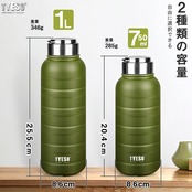 TYESO 水筒 魔法瓶 マグボトル 真空 断熱 スポーツボトル 直飲み ステンレス 2重構造 広口 ハンドル付 大人 子供 0.75 / 1リットル (750ml グリーン)
