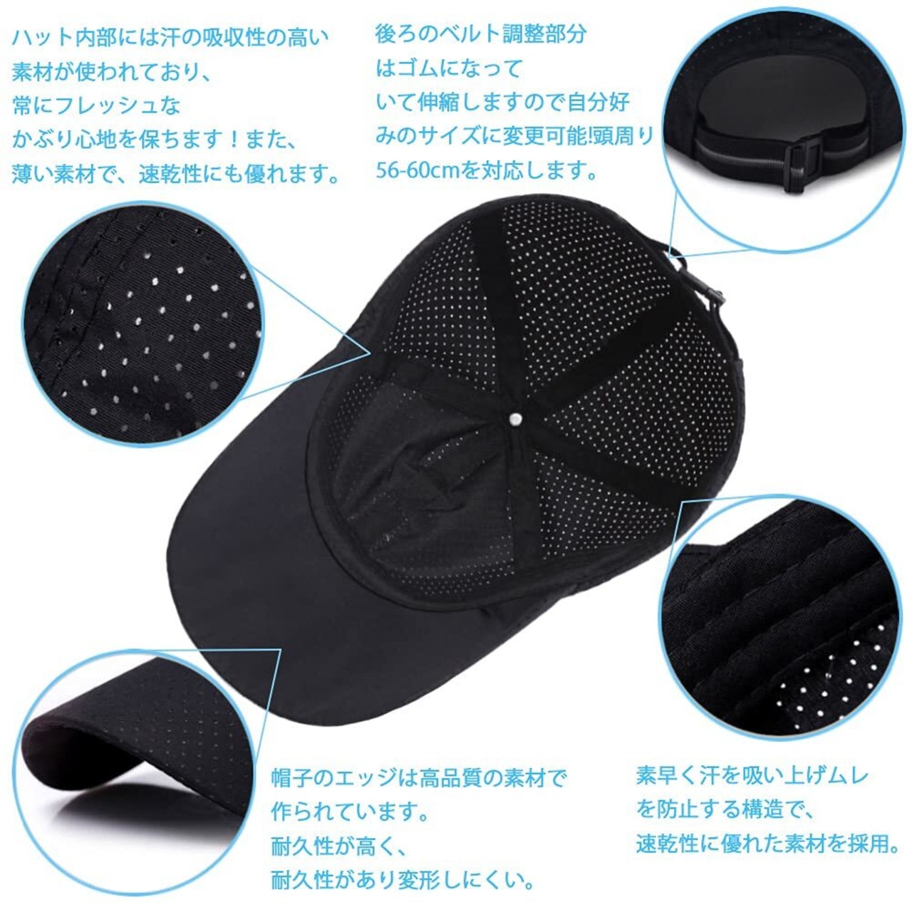 [Andeor] キャップ メッシュキャップ メンズ 【紫外線対策・最軽量・通気性・速乾性】 夏 無地 帽子 UVカット 日よけ 小顔効果 カジュアル おしゃれ 野球帽 登山 釣り ゴルフ 運転 ランニング アウトドア 調整可能 男女兼用