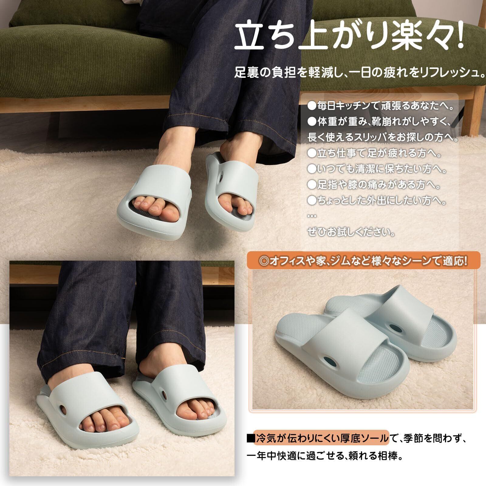 [Alvisto] 理学療法士推奨 スリッパ 室内 サンダル 4cm超厚底 エアースリッパ ルームシューズ レディース メンズ ベランダ バス トイレ 超軽量 静音防滑 柔らか 抗菌防臭 EVA air slippers