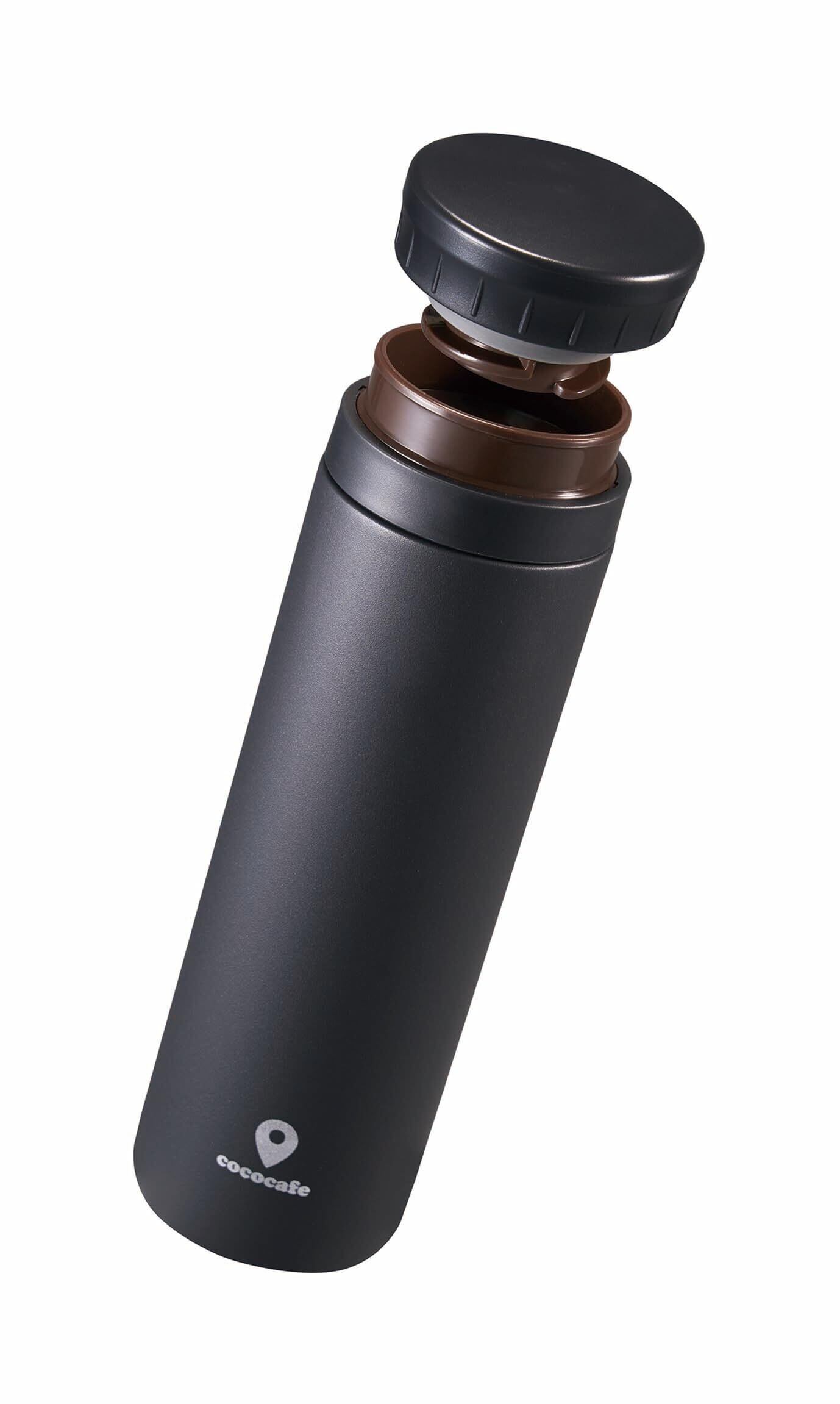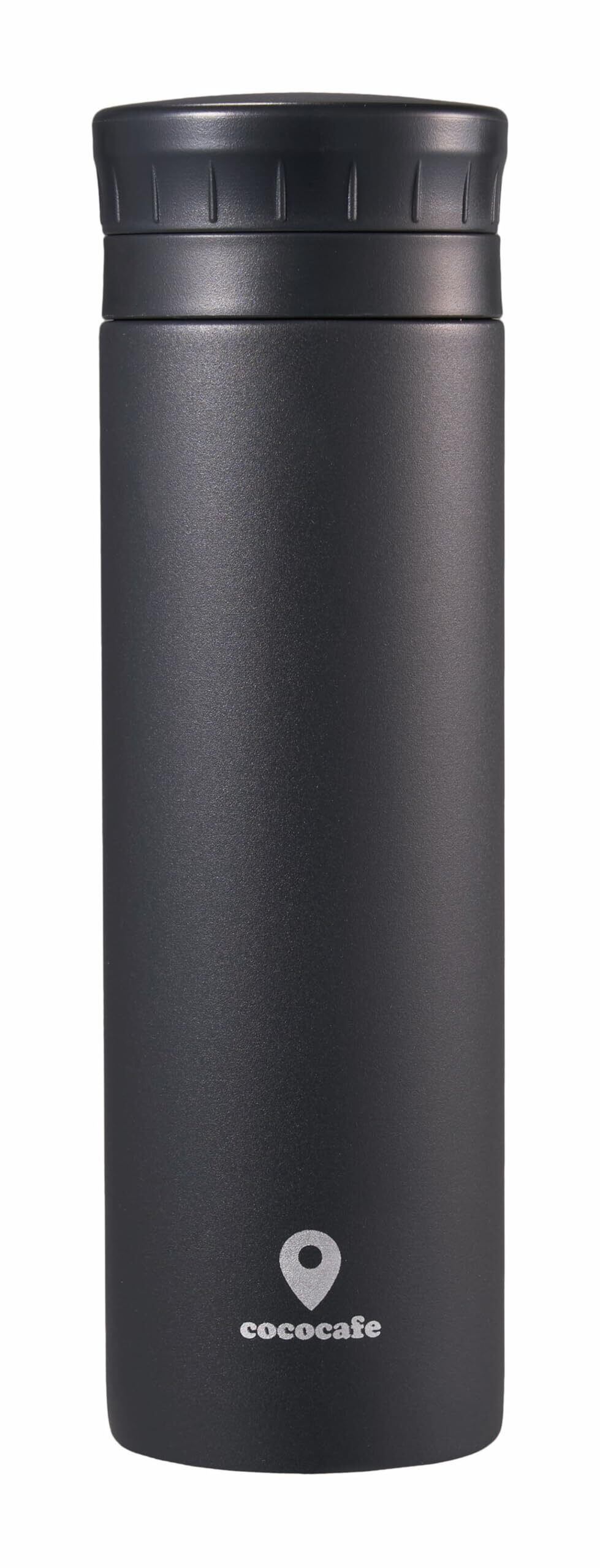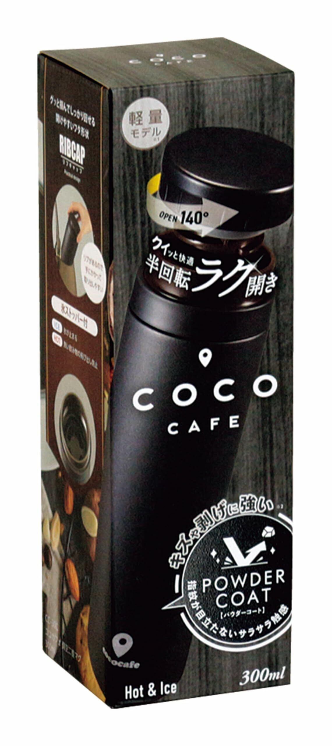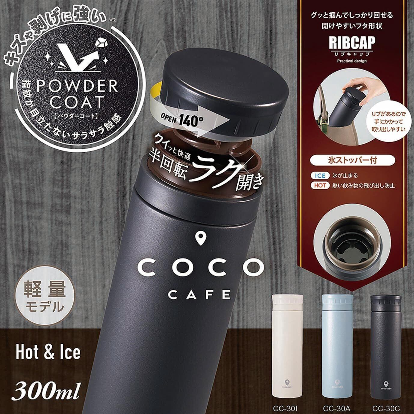 【COC CAFE】ココカフェ ホッとひと休み。ここがいつものカフェになる。 <商品特徴> ◎開けるも閉めるもクイッとカンタン半回転(140°)。 ◎リブがあるので手にかかって取り出しやすい。 ◎グッと掴んでしっかり回せる開けやすいフタ形状。 キズや剥げに強く、指紋が付きにくいパウダーコート。サラサラ触感。 ◎氷ストッパー付き。熱い飲み物の飛び出し防止にも! <商品仕様> 保温効力:59℃以上、保冷効力:10℃以下(6時間) ●商品サイズ:直径59×194mm(満水:330ml) ●重量:185g ●素材:内ビン/ステンレス鋼(クロム18%・ニッケル8%)、胴部/ステンレス鋼(粉体塗装)、フタ栓・中栓/ポリプロピレン、パッキン/シリコーンゴム