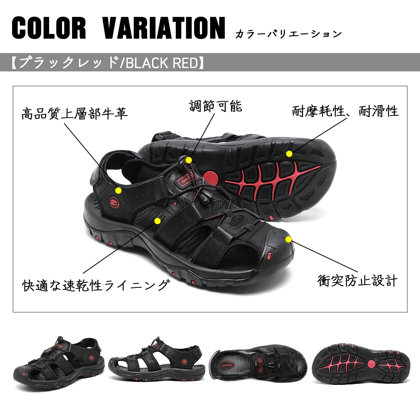 [Shoton] スポーツ サンダル メンズ 外履き スニーカーサンダル アウトドアサンダル 水陸両用 スポーツサンダル 登山サンダル おしゃれ 夏用 つま先保護 軽量 防滑 速乾 通気 カジュアルサンダル