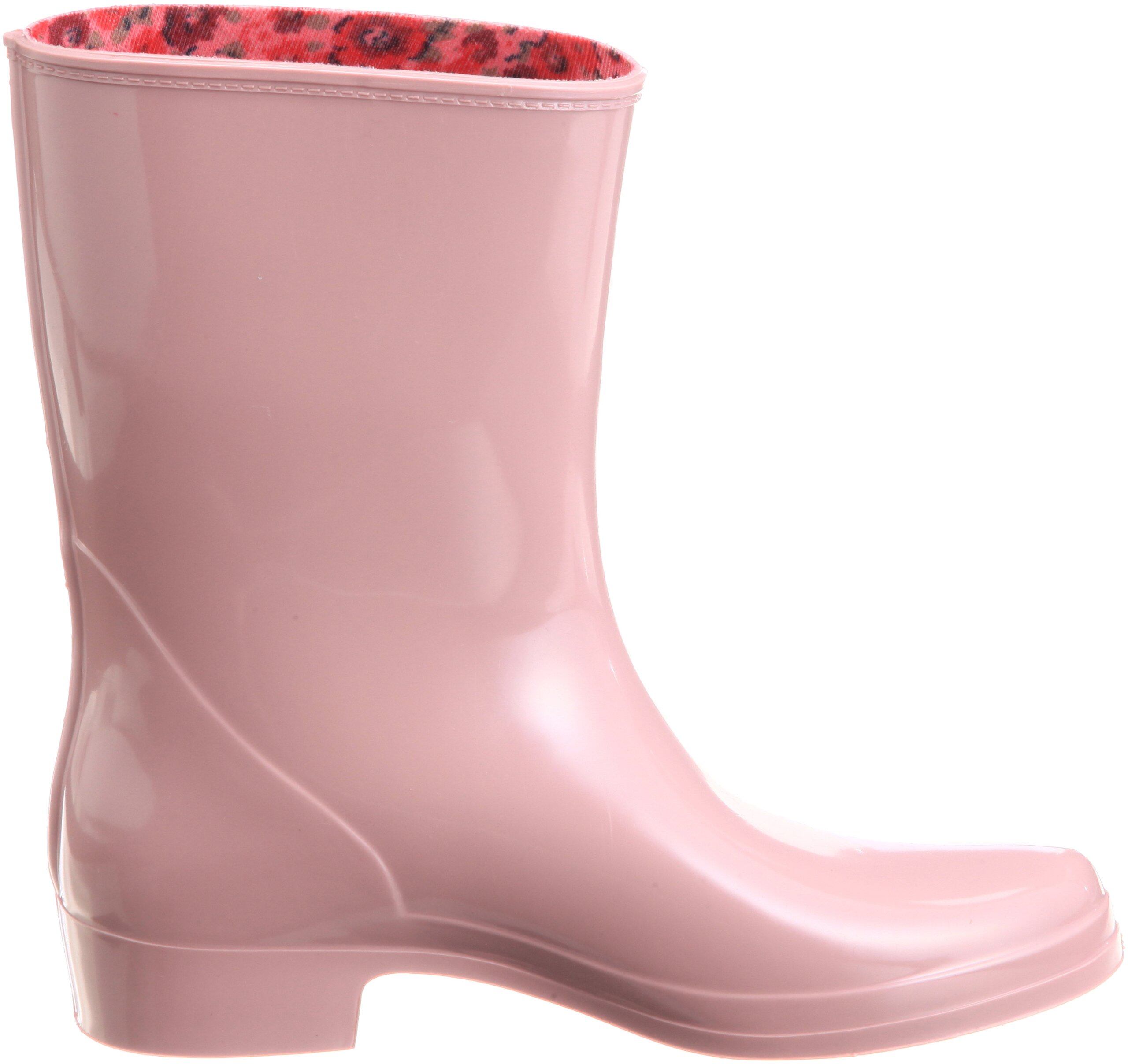 こちらの長靴はインジェクション製法で作られています。(プラスチック成型加工方法の代表的な成型方法で、金属モールドの組み合わせによって出来る空洞部へ合成樹脂・ポリウレタン等を注入し、アウトソールを成型すると同時に、アッパーとの接着を行う製法です)安心の日本製です。雨の日にはもちろん、ガーデニングや農作業に最適ですインナーはかわいいお花柄。