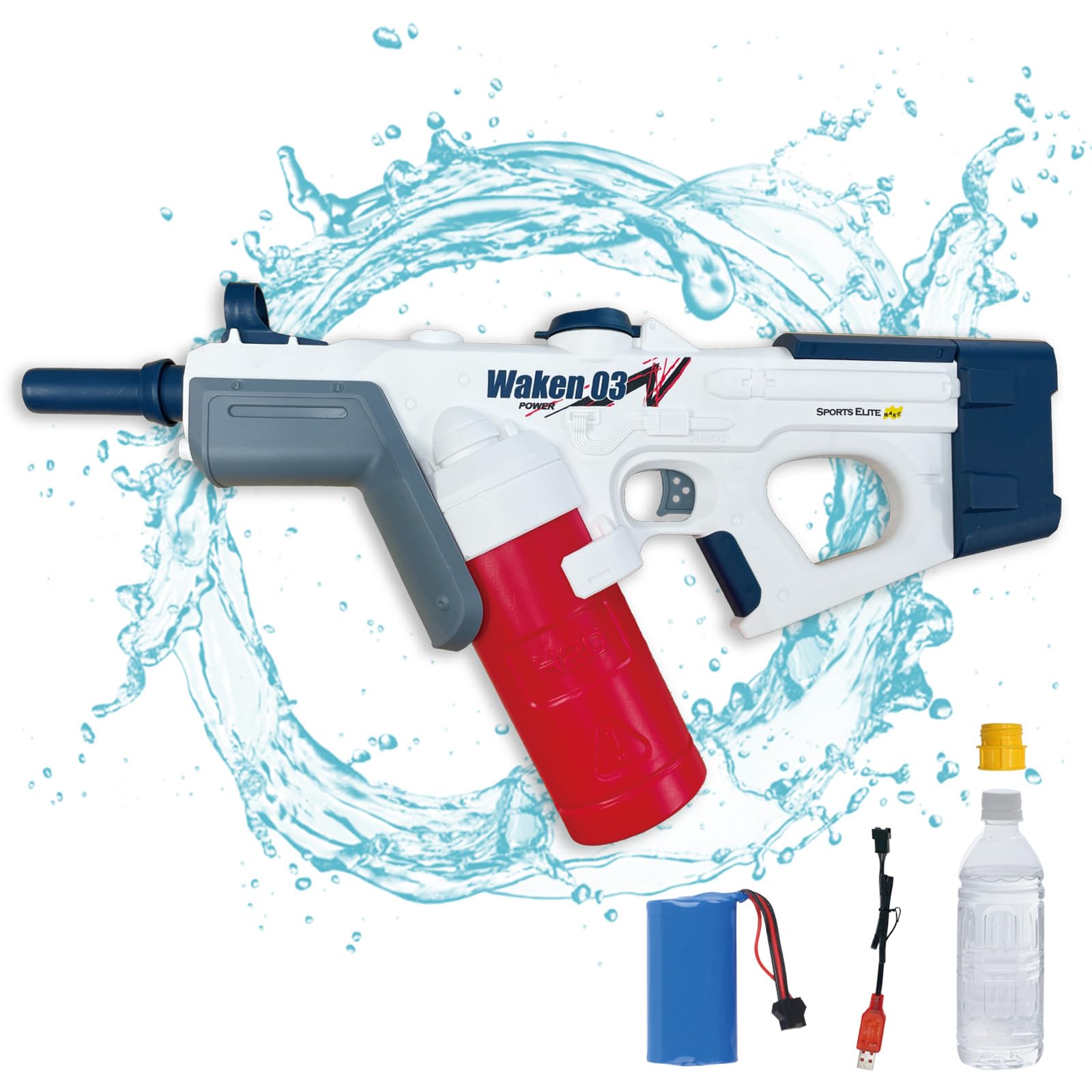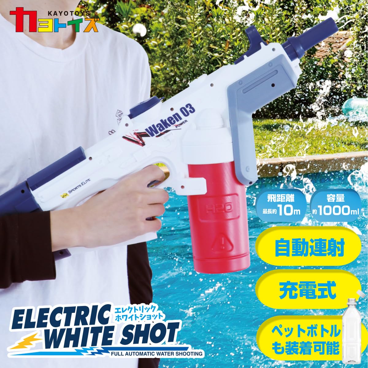 ウォーターガン 電動 エレクトリックホワイトショット 水鉄砲 おもちゃ こども (ホワイト(充電式/音・反動あり))