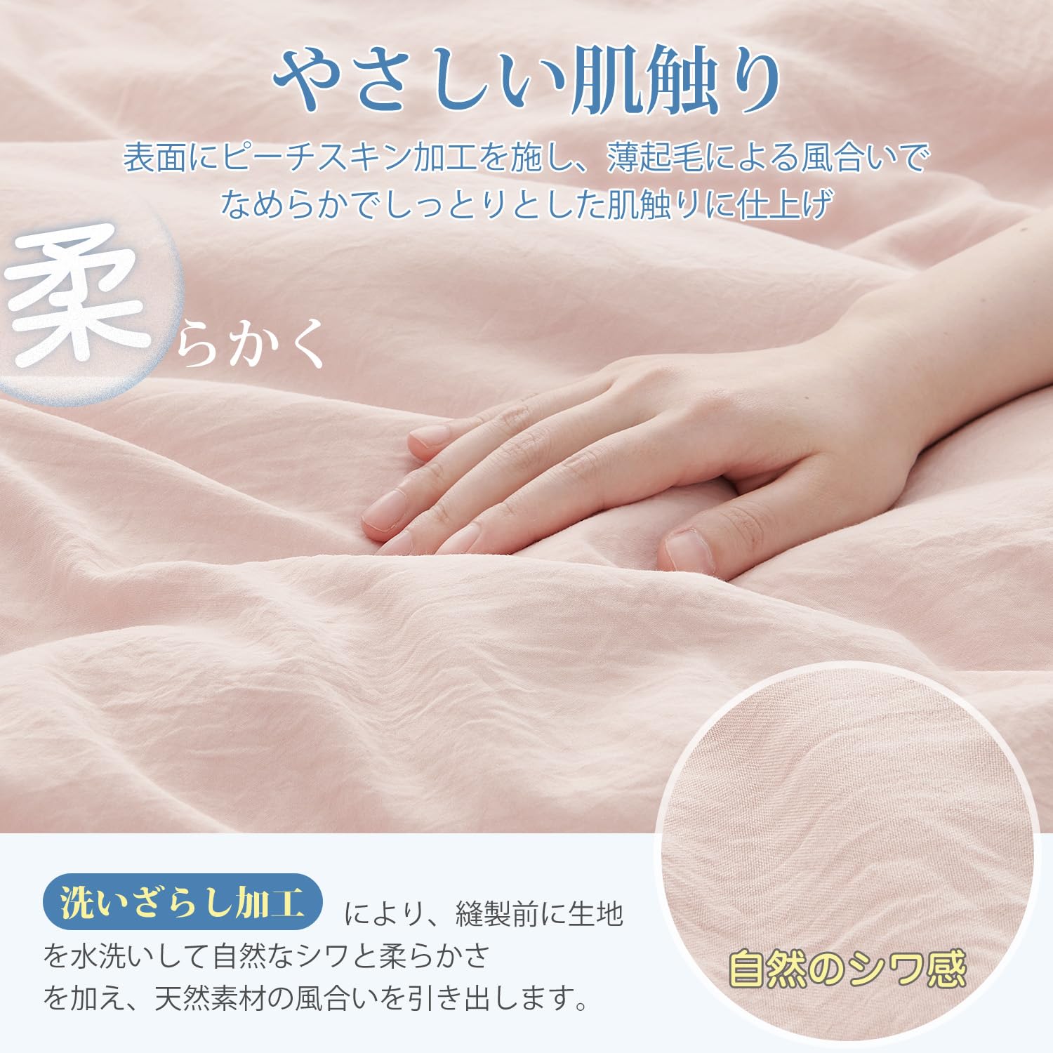 【特価セール】クモリ(Kumori) 掛け布団カバー シングル 洗いざらし 吸湿速乾 素肌にやさしい 柔らかい しっとり ピーチスキン シワ加工 丸洗いOK オールシーズン 布団カバー 掛ふとんカバー (シングル・150X210cm ピンク) | nico3588