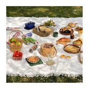 【インスタ映え】思いっきりインテリアのレースの布ですが、実はレジャーシートのワンポイントとして大活躍します。普通のレジャーシートよりもファンシーなので、海外のピクニックみたいな画が撮れます。