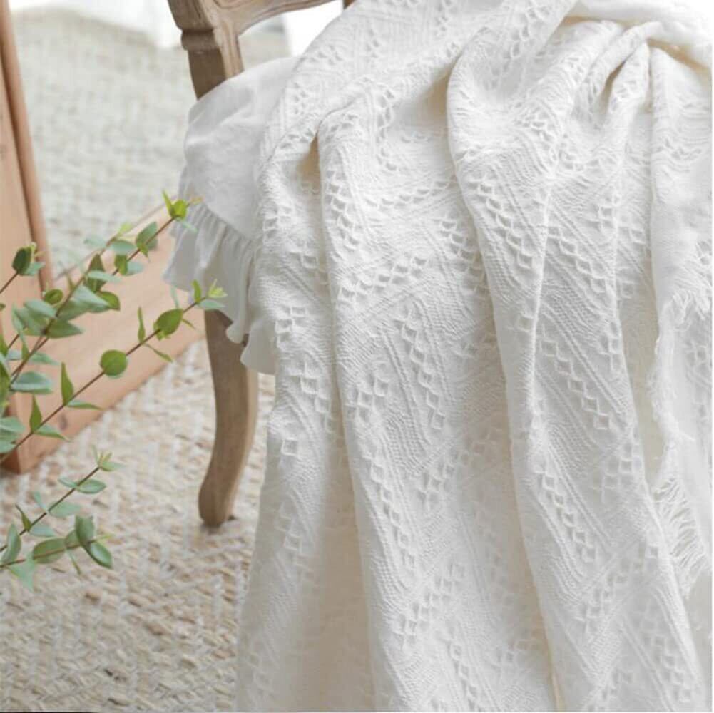 【汎用性】マルチカバーとして色んな使い道のある布のようなシートです。さわり心地もよく、デザインがシンプルでとてもおしゃれです。大きめなのでソファカバーとしても使えますし、チェアにかけておくだけでも画になります。周りがフリンジっぽくなっているのもポイントです。