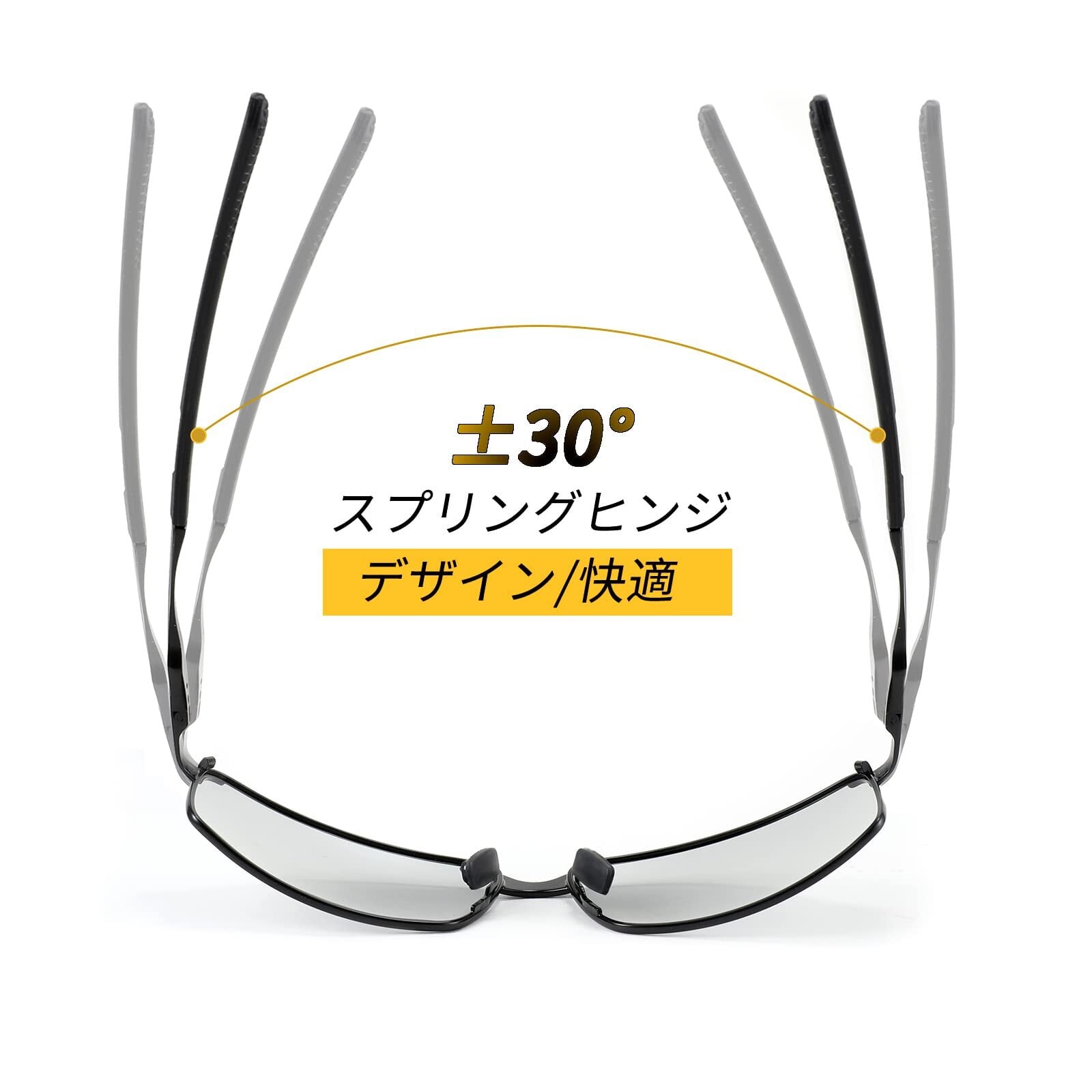 【極細軽量フレーム】 アルミニウム+マグネシウム合金素材で、超軽量、高強度なフレームを実現。さらに、サイドフレームを最大限、極細にすることで、さらなる軽量化に成功。また、極細フレームが他にはないスタイリッシュで軽やかなつけ心地をもたらしています。 どんな顔の方にもフィットできるよう、ヒンジが大きく開く特殊構造も採用しています。