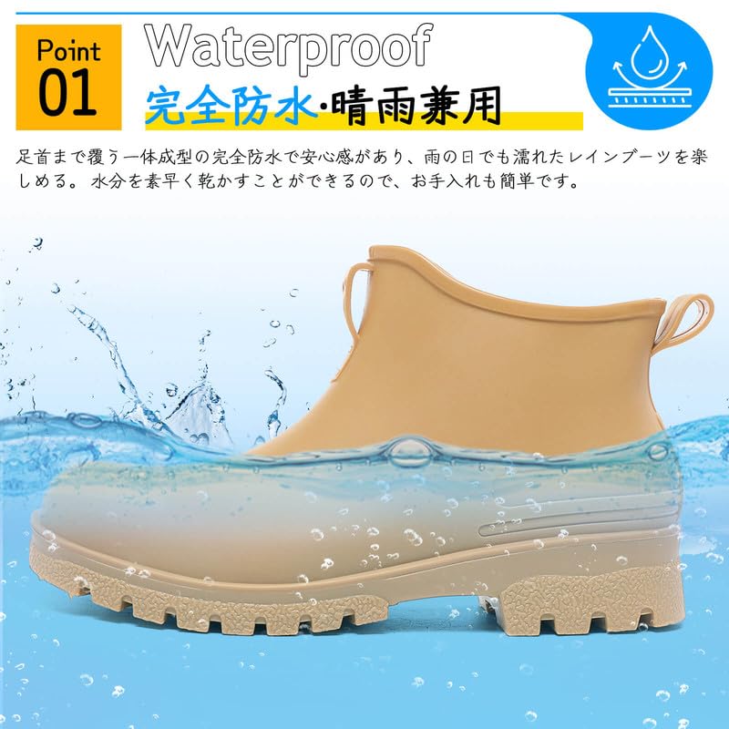 [ziitop] レインブーツ レディース ショート レインシューズ 防水 雨靴 ラバーブーツ ショートブーツ 梅雨対策 滑り止め 通勤 おしゃれ 軽量 柔らかい きれい 晴雨兼用 Rain Boots 履きやすい