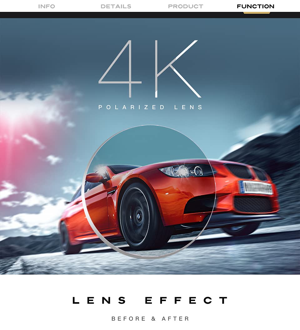 【UV400】高効率のフィルター層は、紫外線 (UVA、UAB、UVC) を100%カットし、あらゆる屈折散乱光を排除し、シーンをソフトに見せながらまぶしくなく、視界はよりクリアで、効果的に目を保護します。