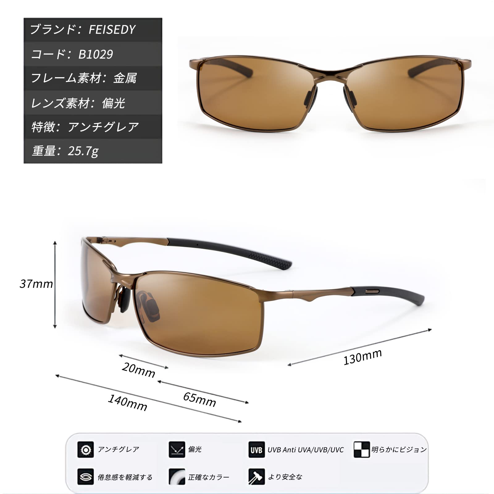 [FEISEDY] サングラス メンズ 偏光サングラス UV400保護 超軽量 運転/自転車/釣り B1029