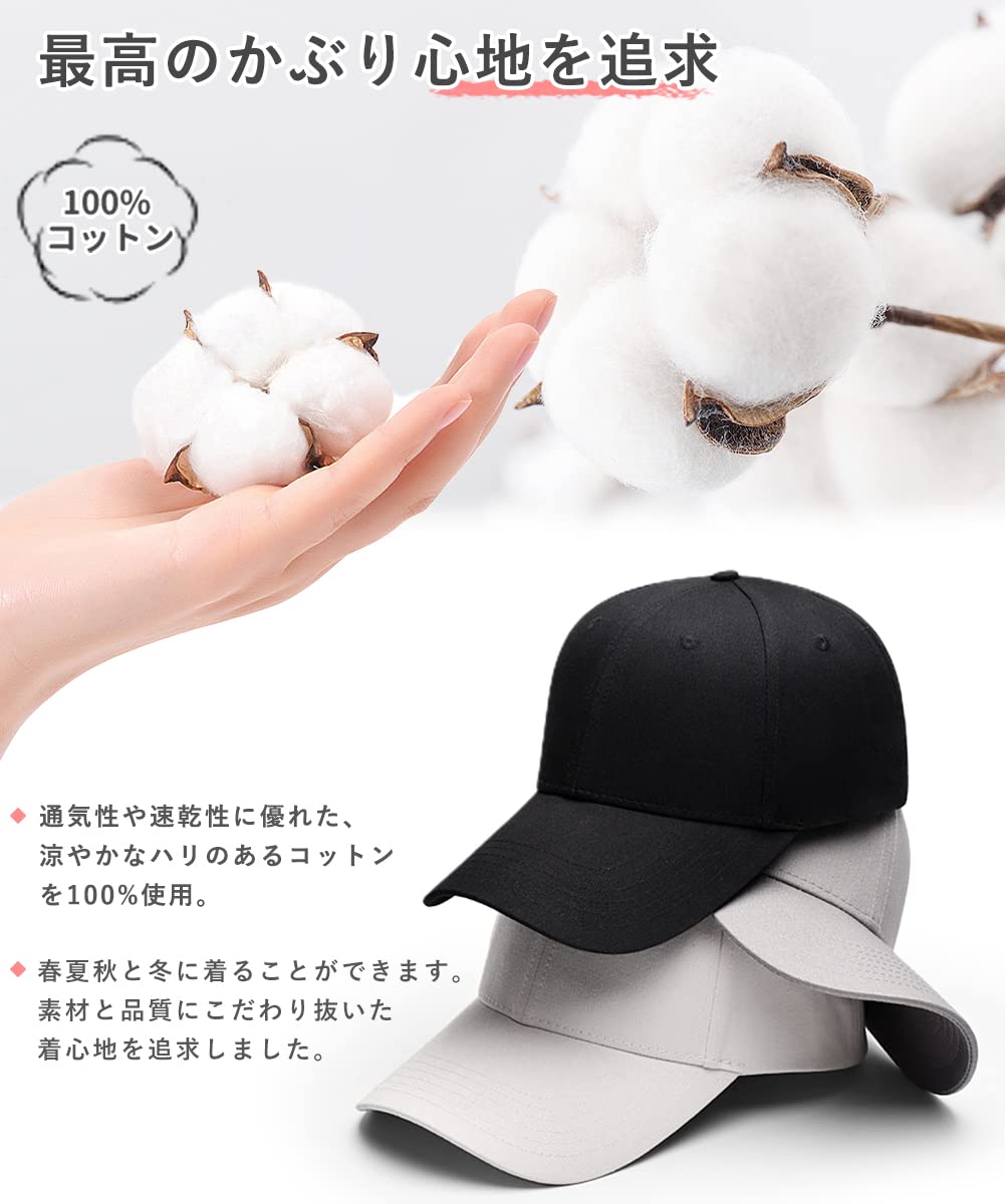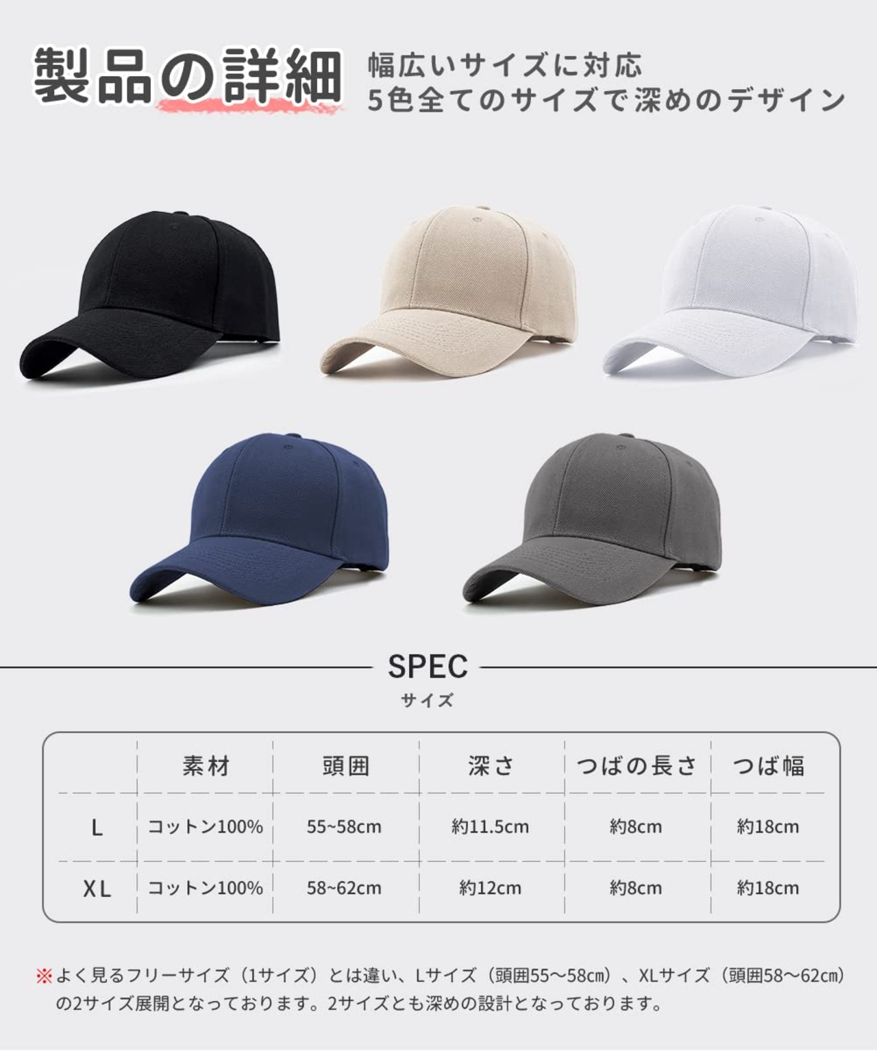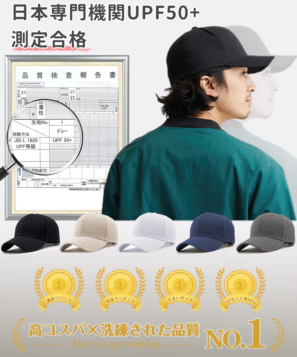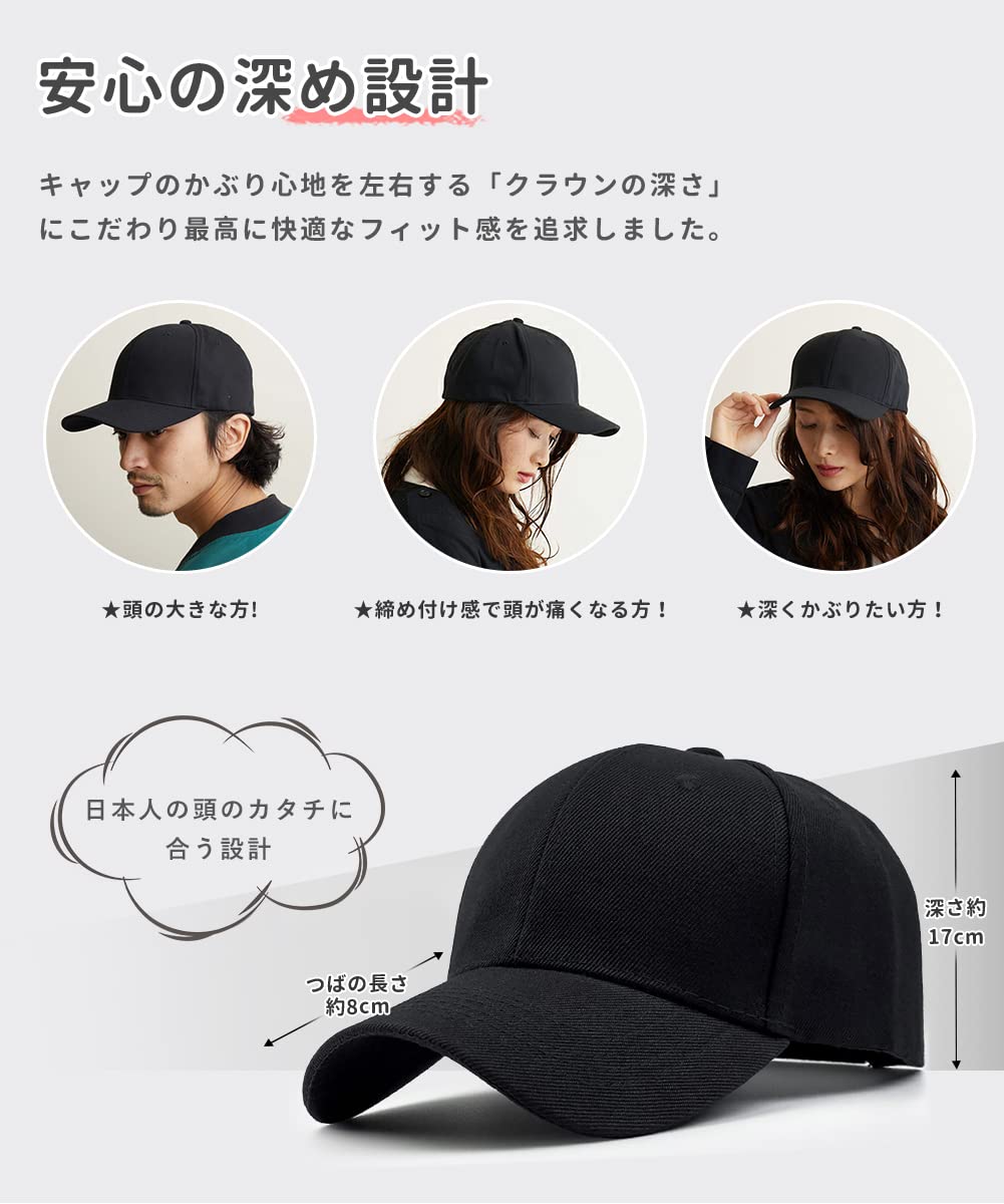 [Andeor] キャップ メンズ 大きいサイズ 帽子【UPF50+測定済み・こだわりの深さ・2重型崩れにくい】 無地 野球帽 コットン100% 紫外線対策 日よけ 人気 男女兼用 2サイズ展開