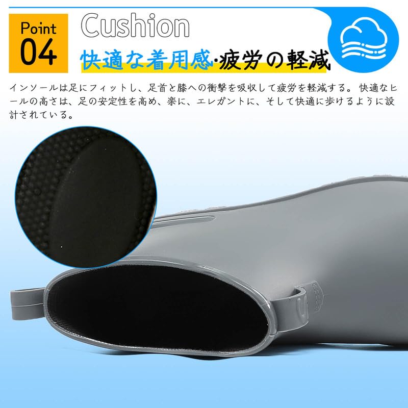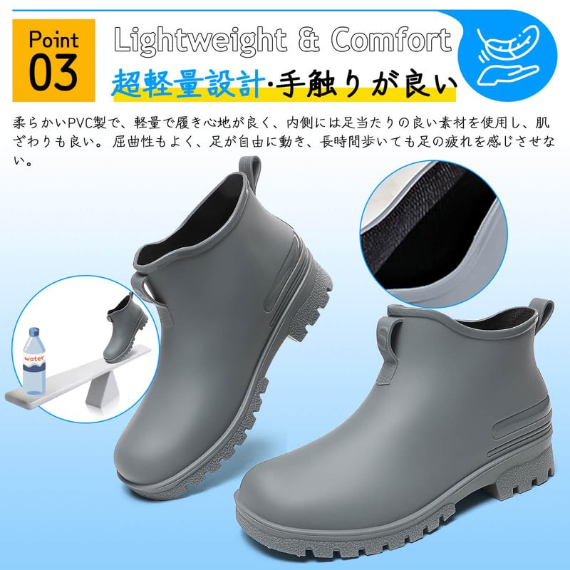 防水仕様のPVC素材:天然ゴムを使用し、防水性と柔らかさに優れています。レインスニーカーに水が染み込む心配がなく、雨や雪の日でも安心して快適に通勤できます。
