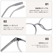 ブルーライト対策:ブルーライトカットレンズを採用され、デジタルデバイスなどから発生する有害なブルーライトをカットし、目の負担を減らします