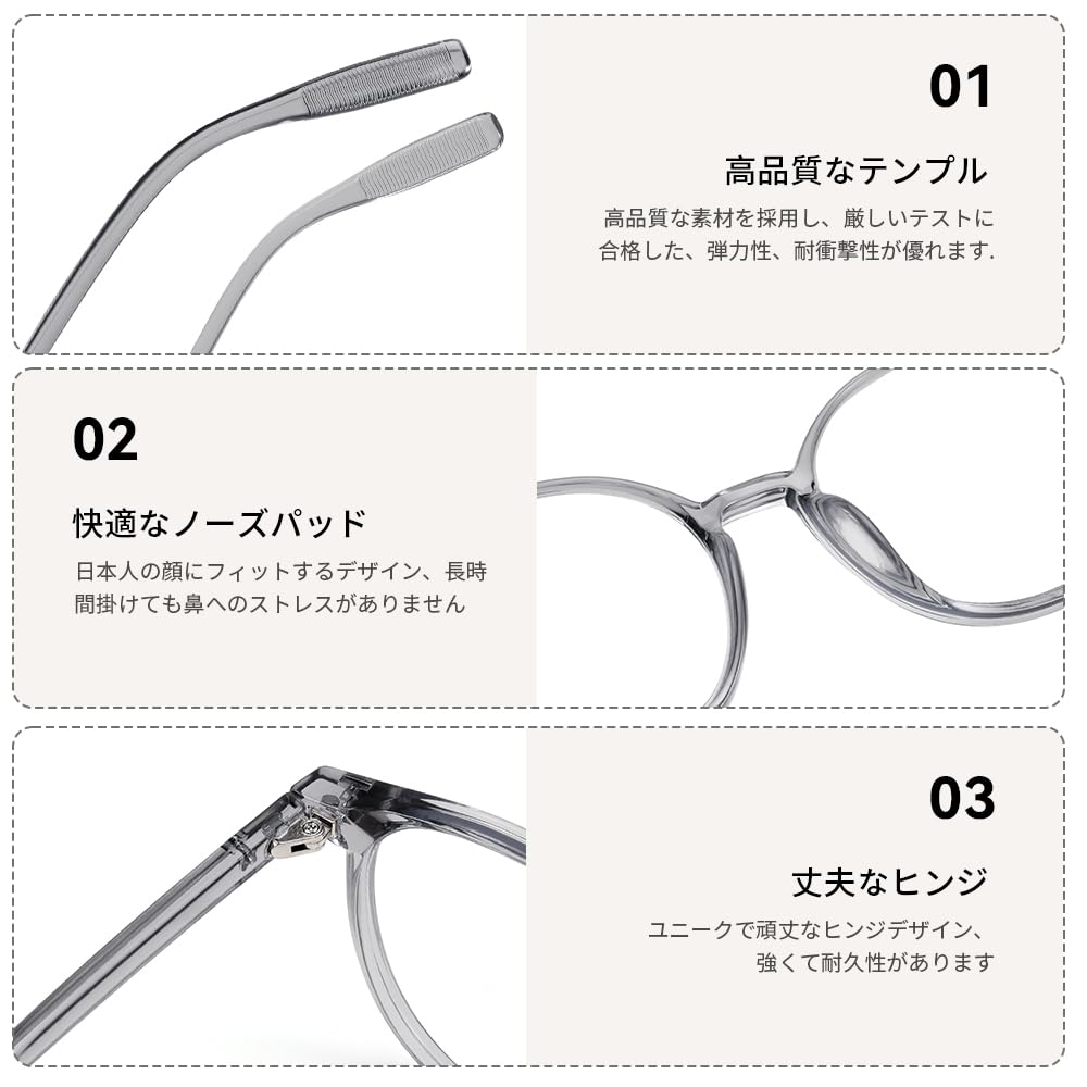 快適な掛け心地:フレームは超軽量なTR素材を採用しており、長時間掛けても圧迫感なく、耳の後ろが痛くなりにくいです。一体式なノーズパッドではなすじには圧迫感が減ります