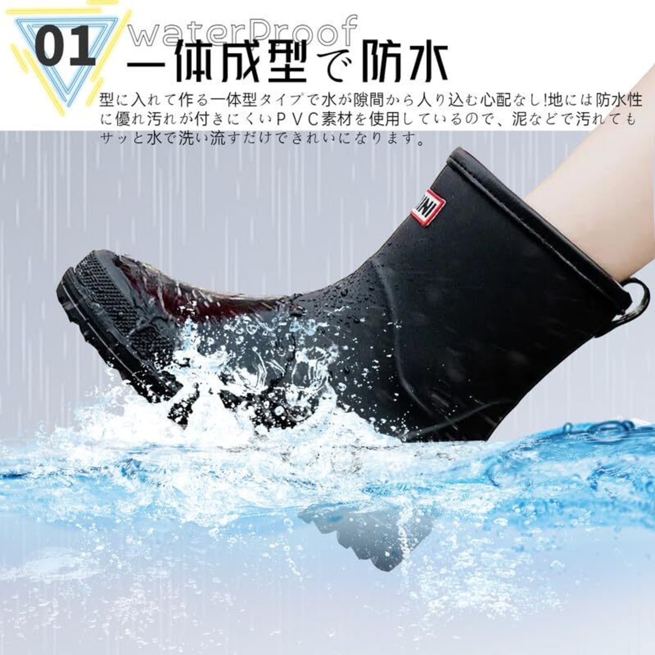【一体成型で防水】急な雨が多い季節に大活躍の1足です。アッパーからソールまで継ぎ目のない設計なので水の侵入を完全にシャットアウト!水をはじくラバー風素材は汚れも付きにくい。