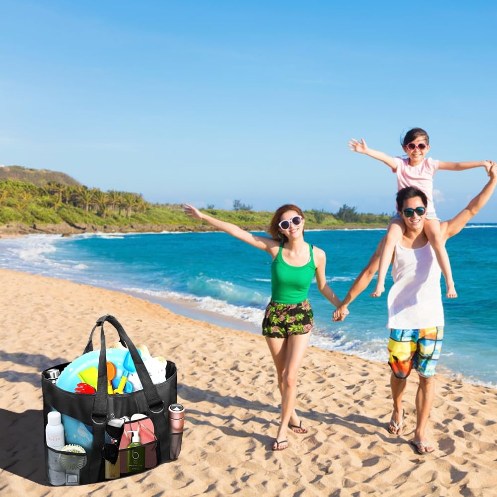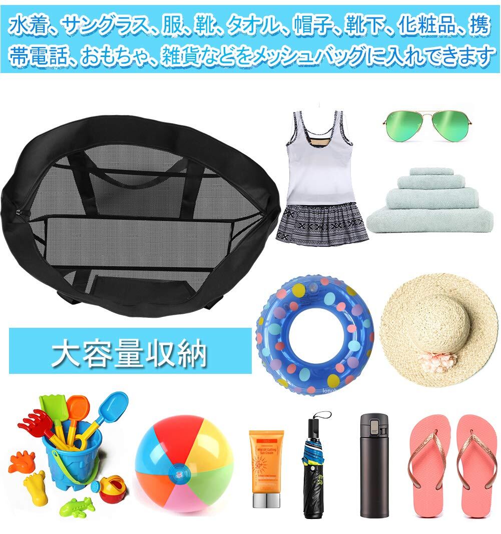 【在庫処分】CANPEKI ビーチバッグ プールバッグ 軽量 大容量 メッシュバッグ ビーチ/水泳/ジム/スパ/温泉/旅行 収納袋 手提げカバン 収納力 折り畳み可能 手提げバッグ (ブラック)