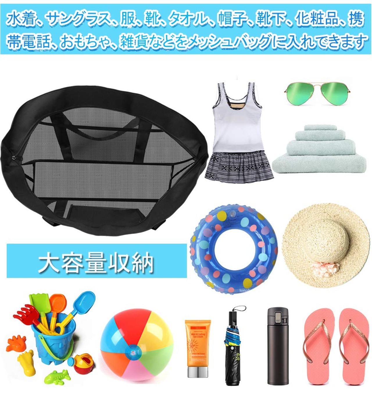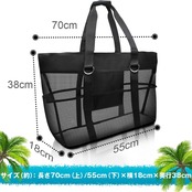 【高品質な手提げバッグ】素材はメッシュで通気性がよく、汚れにくく、水を残りません。縫い目もしっかりしたメッシュ素材のため、砂やお水など軽く払えば出てきます。吸水性はなくて、水に沁みられても速乾です。