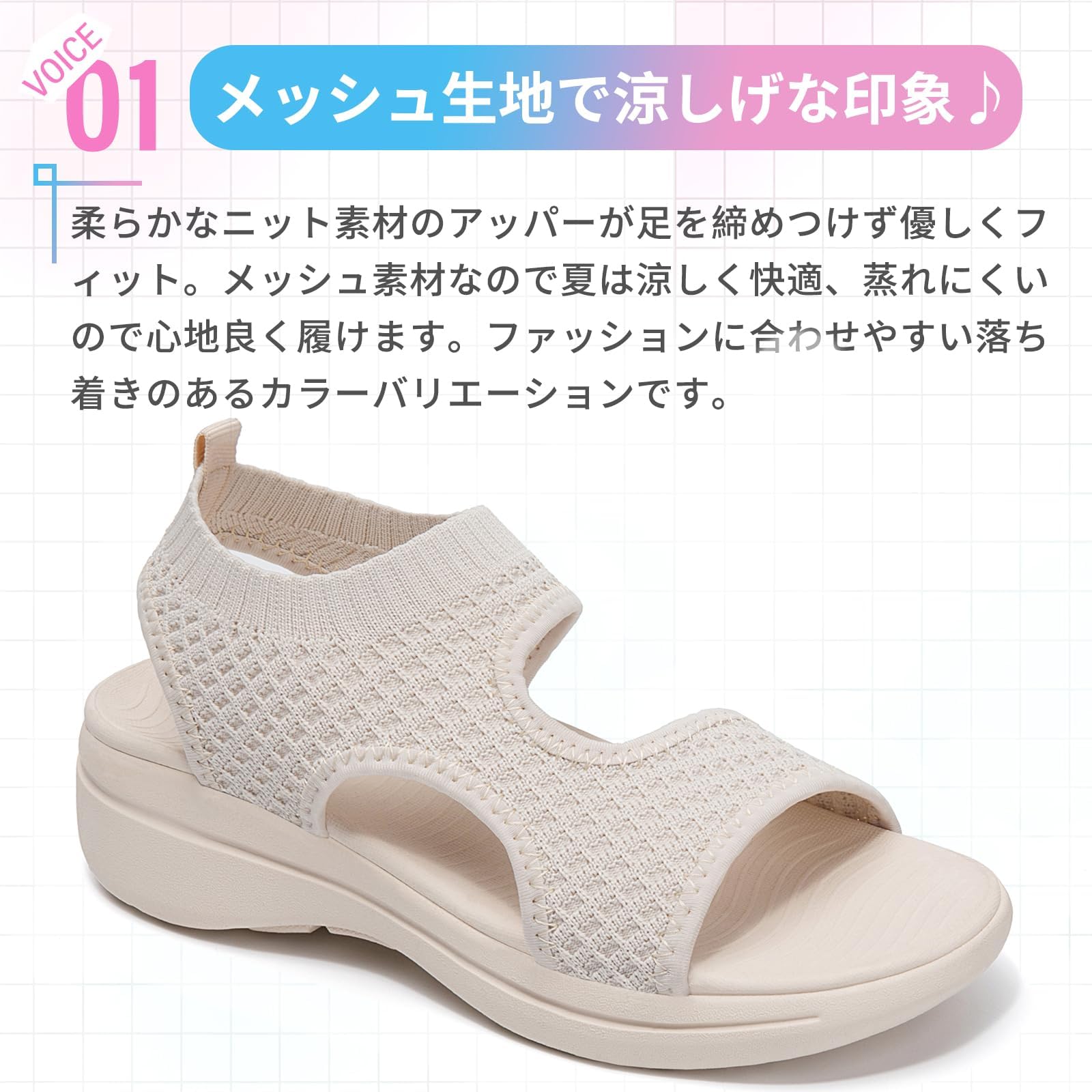 [STRDEOUT] レディース スポーツサンダル ニット メッシュ 夏 オフィス サンダル 歩きやすい 厚底 軽量 通気 ウォーキング オシャレ