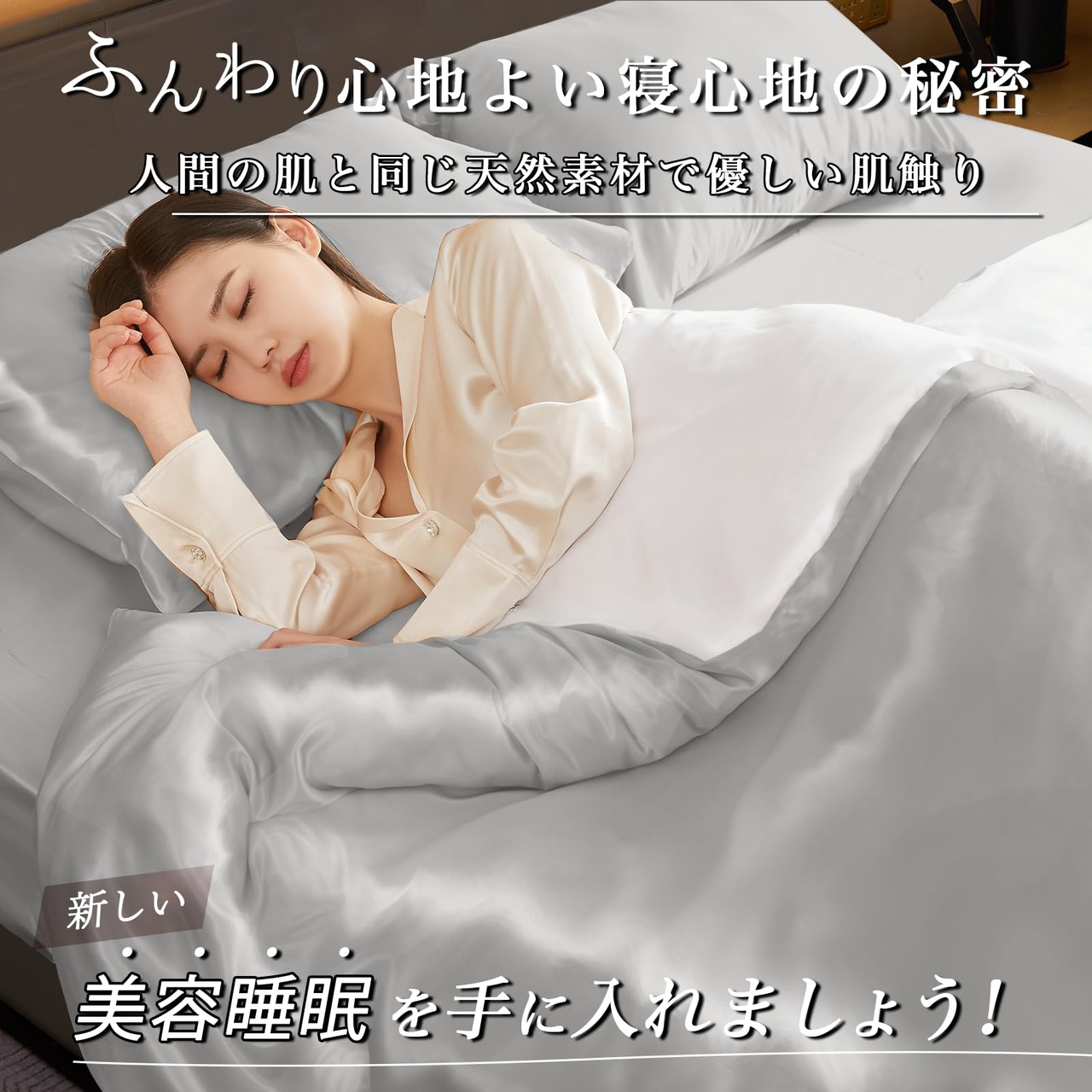 【肌や髪のトラブルに悩む方必見!】Utukkyのシルク布団カバーは、摩擦による髪や肌へのダメージに悩まされている方におすすめです。シルク繊維には天然の保湿成分セリシンが含まれ、乾燥や寝返りによる摩擦から肌や髪を守ってくれます。また、朝の髪の乱れも軽減。シルク布団カバーは肌や髪へのダメージを最小限に抑え、美容効果が期待できるだけでなく、快適な睡眠をサポートしてくれます。今すぐ、新しい"美容睡眠"を手に入れましょう!