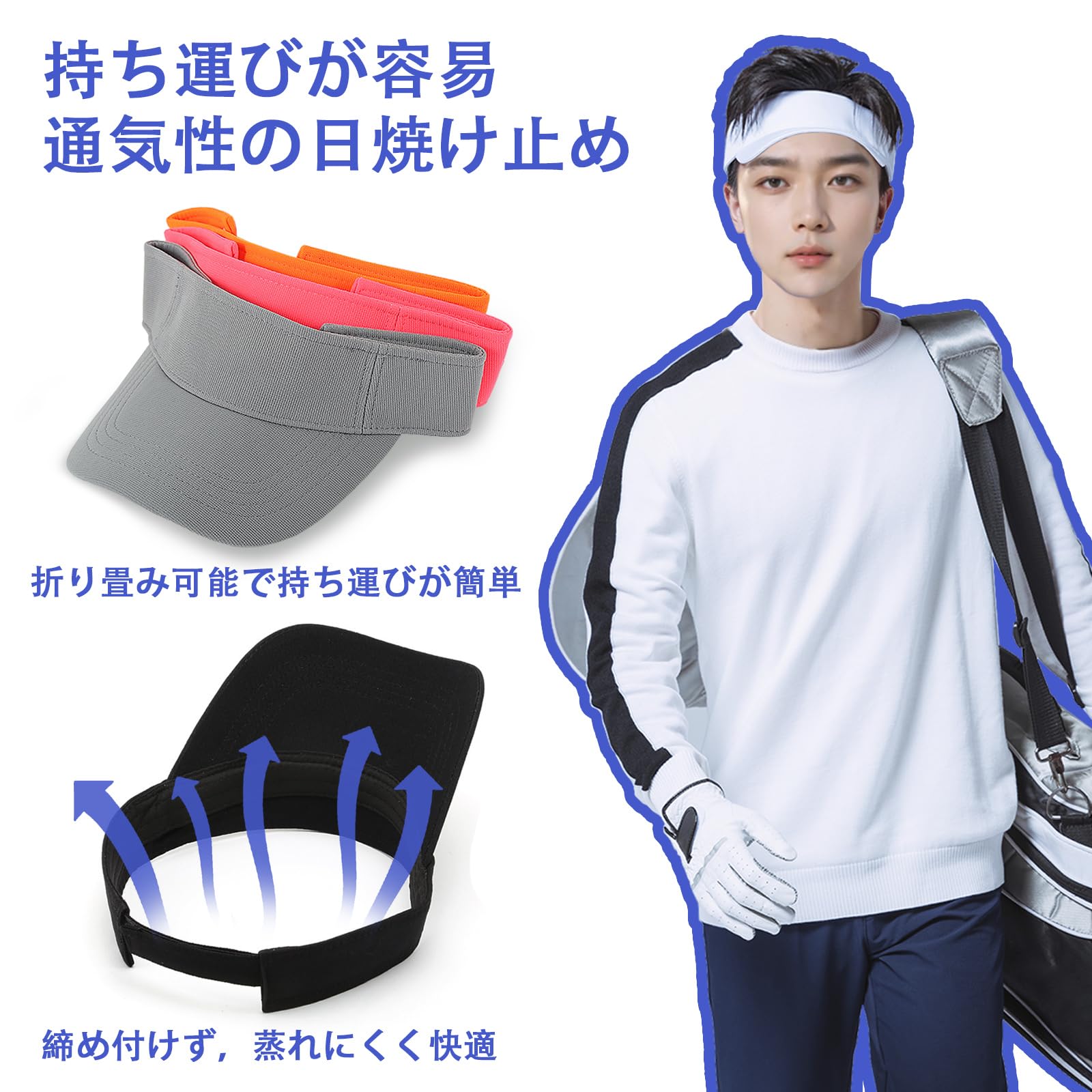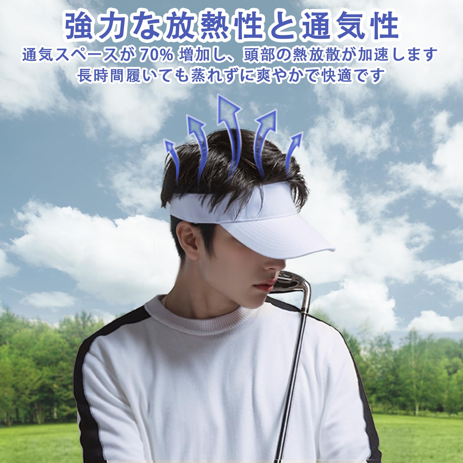 [LANGYU] サンバイザー レディース メンズ ゴルフサンバイザー 無地 帽子 つば大き目 日除け UVカット バイザー 吸汗速乾 抗菌防臭 軽量 フリーサイズ 調節可能 ゴルフ ランニング アウトドア スポーツ