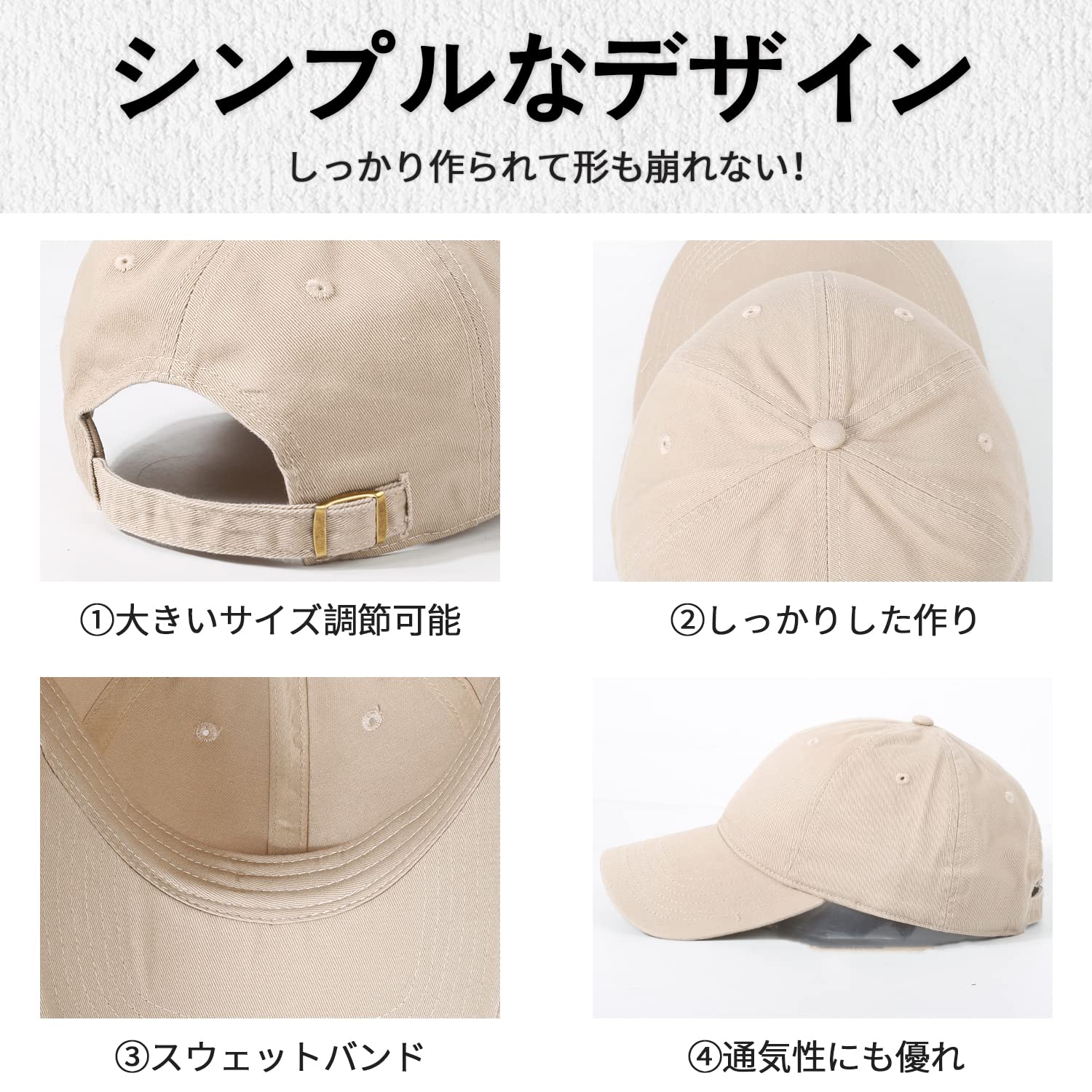 【最高のフィット感】ソフトな素材で通気性の良いコットン100%のキャップは、最高のフィット感と快適さを追求したデザインです。軽量で柔らかく、しっかりした生地なので、夏の暑い時期だけでなく、オールシーズン快適に着用できます。