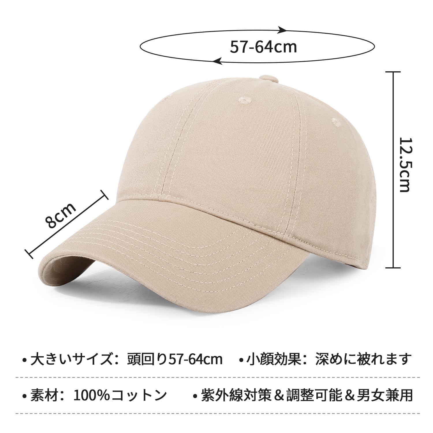 [Geyanuo] キャップ メンズ 大きいサイズ 帽子 深め 特大 60-64cm コットン100% 無地 紫外線対策 サイズ調整可能 アウトドア シンプル カジュアル 帽子 男女兼用