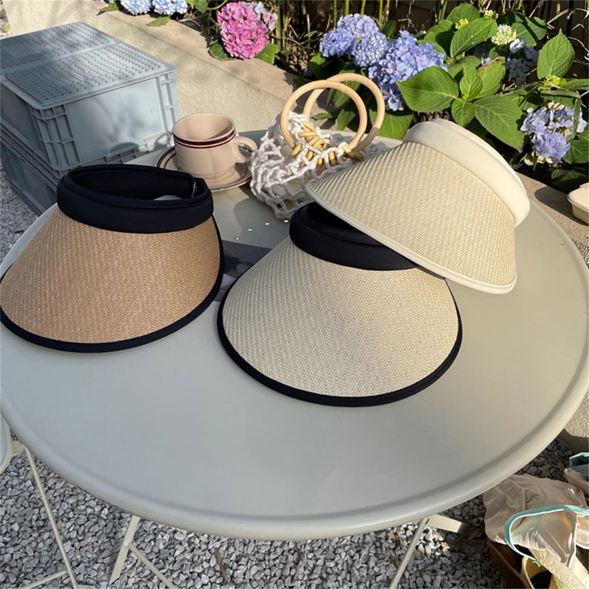 【被りやすいザンバイザー】カチューシャタイプのサンバイザー。髪型を崩さず装着できます。軽量でかぶりやすい。麦わら風ストロー素材のナチュラルテイストで、見た目のかわいらしさと実用性を両立。日差しを遮りつつおしゃれを楽しめるデザインです。