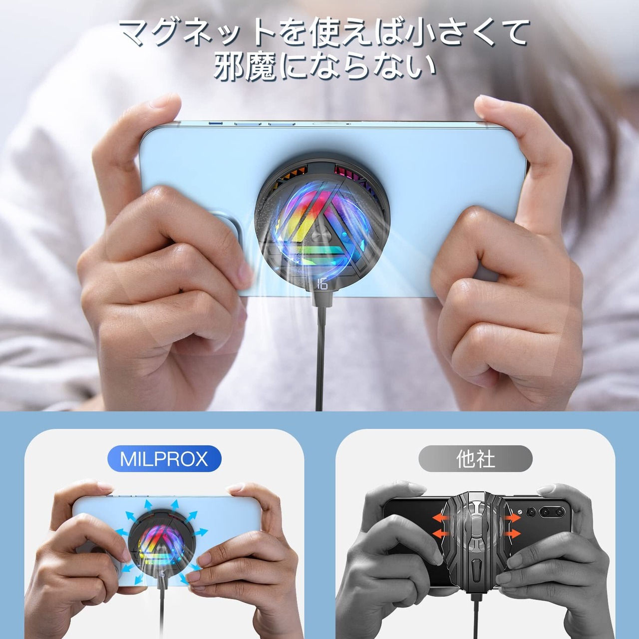 【新着商品】MILPROX スマホクーラー スマホ冷却ファン スマホ熱対策 最低8℃ 半導体 3秒急速冷却 LED温度表示 磁力式&クリップ式2way 静音 軽量 小型 USB給電 実況専用 動画配信 熱暴走対策 暑さ対策 iPhone/iPad/Android(4.7-6.7インチ)等多機種対応