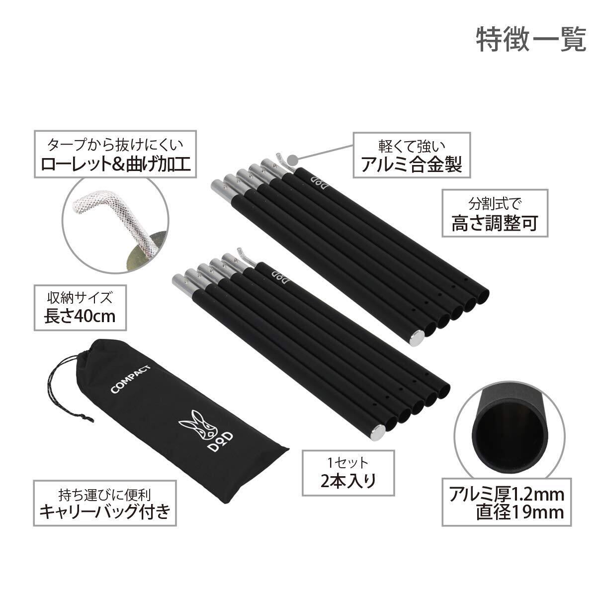DOD(ディーオーディー) コンパクトタープポール 収納40cm 太さ19mm【ツーリング仕様】MAX約200cm