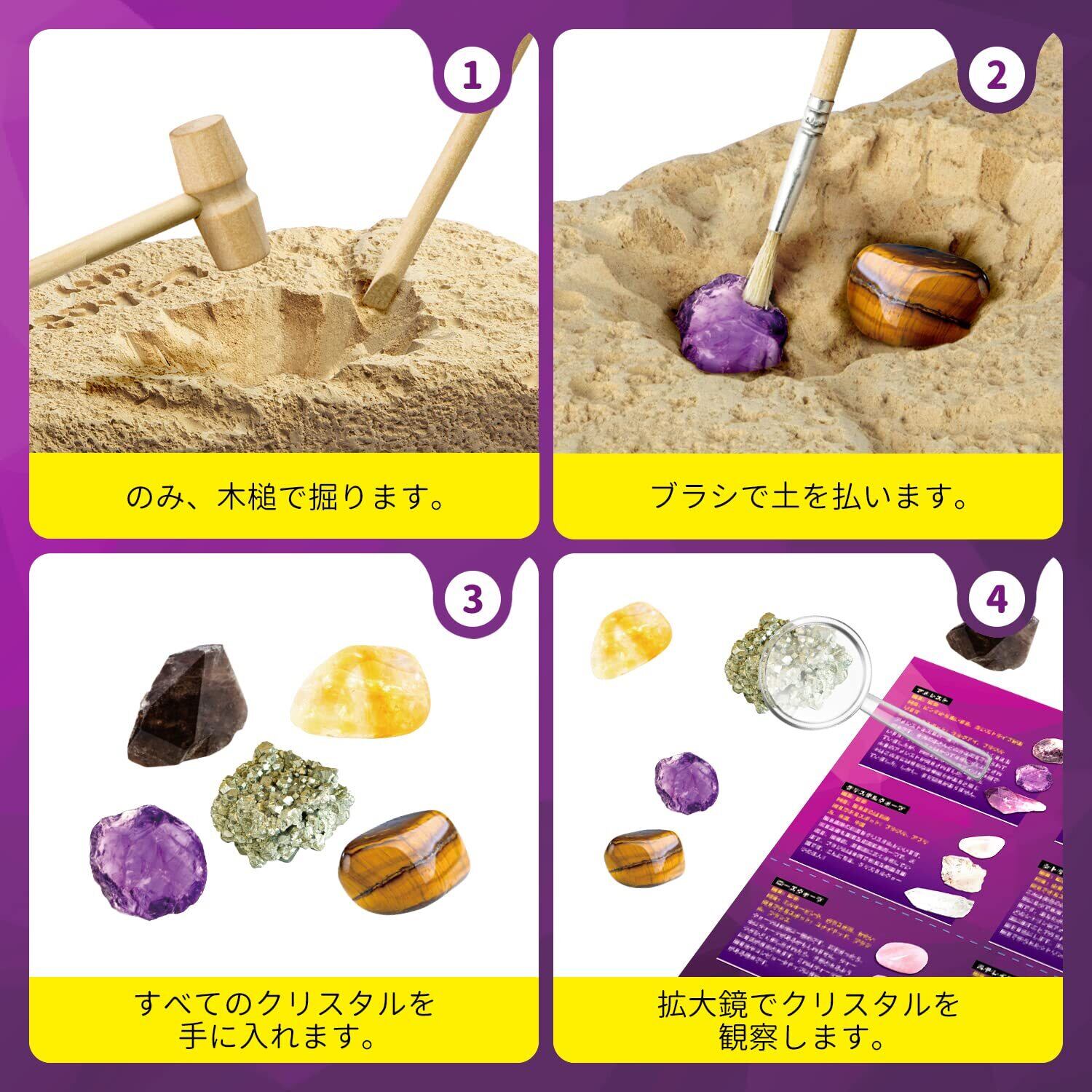 XXTOYS クリスタル発掘キット 水晶発見 宝石採掘 おもちゃ アメジスト 知育 子供 地質学 プレゼント ギフト