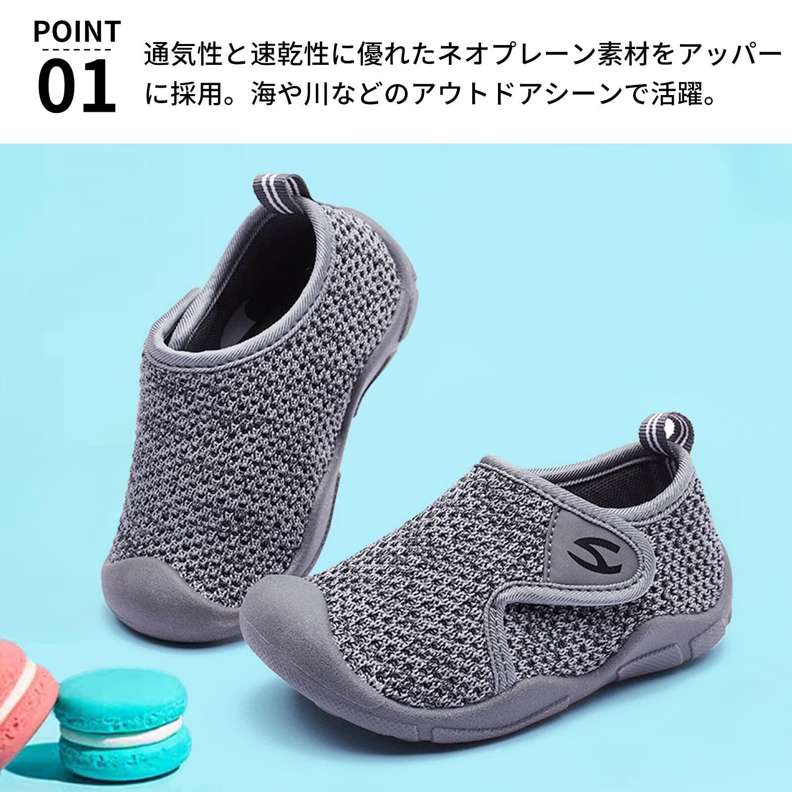 【通気性抜群のニット素材】水辺にも街履きにも活躍するキッズ向けのサンダル。アッパー生地は、通気性に優れたメッシュ糸をニットのように緻密に編み上げ、真夏でもサラリと快適。片足約130gの軽量設計。履いていることを忘れてしまうほどの軽い履き心地で、軽快はフットワークを実現。