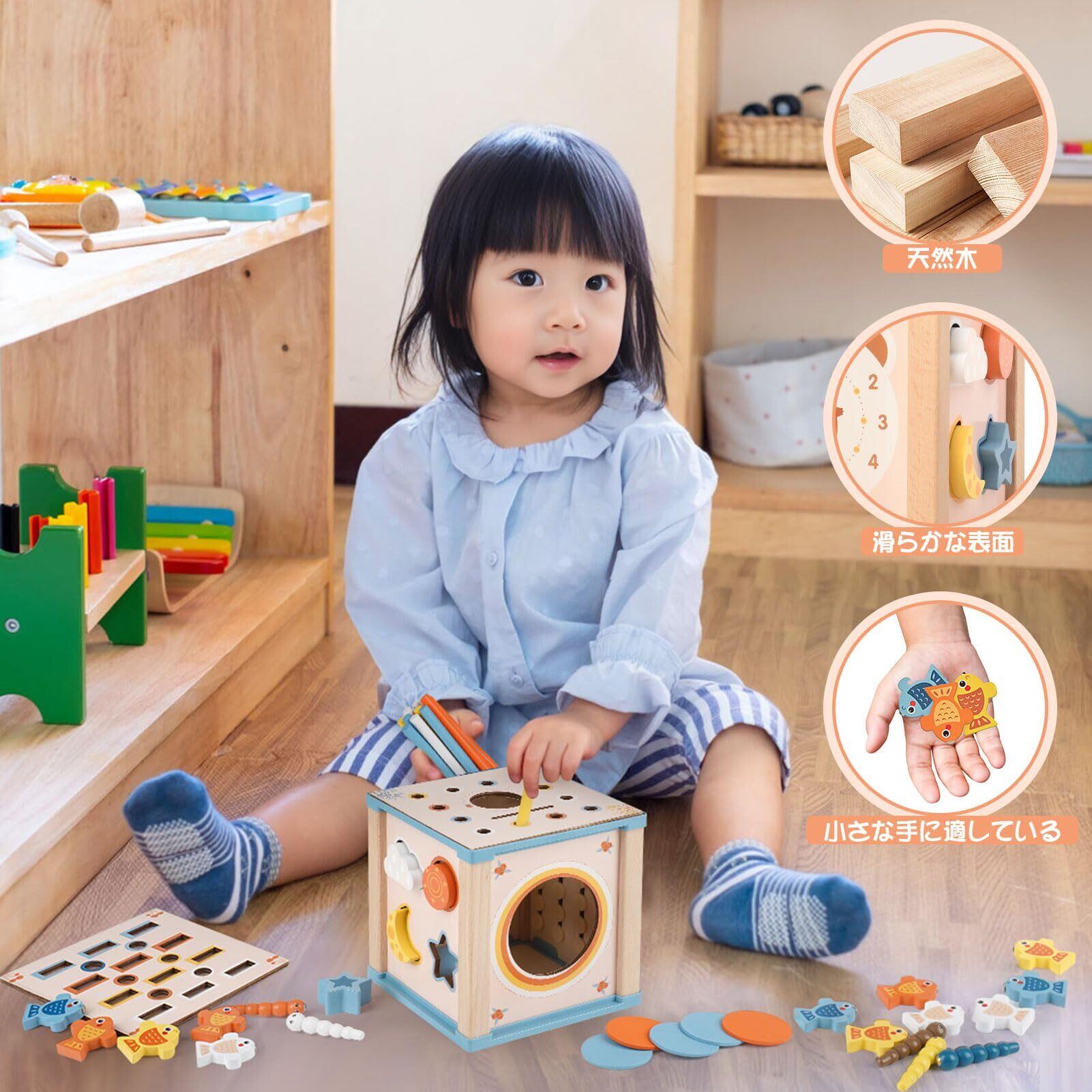 モンテッソーリ 玩具 1歳 おもちゃ 男の子 女の子 知育玩具 木のおもちゃ 1 2 3歳 誕生日プレゼント 知育時計 指先の知育 早期開発 指先訓練 子供おもちゃ 知育ボックス アクティビティキューブ 出産祝い 入園お祝い プレゼント