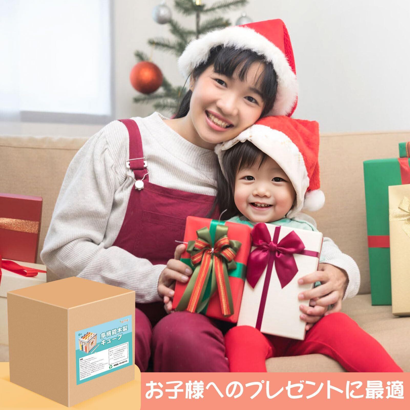 【安全で耐久性】無垢の木で作られたこの木のおもちゃは、細かく磨かれたエッジと頑丈で耐久性があります。 丸みを帯びた角は、お子様の小さな手のためにデザインされています。このアクティビティ・キューブは、無害な水性塗料を使用しており、1~3歳の幼児向けの知育玩具としてご両親に人気です。