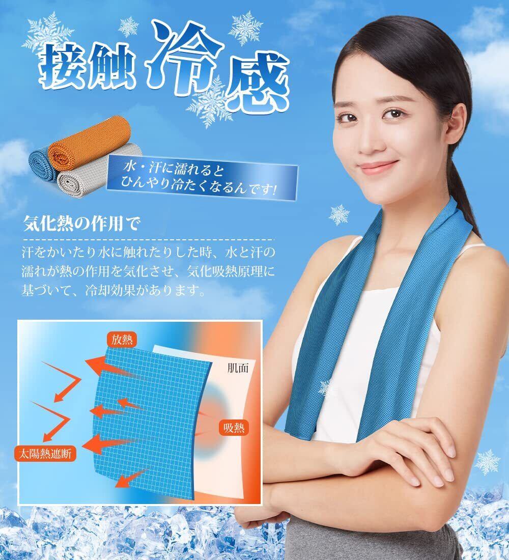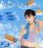 【冷感タオル詳細】素材:100%冷感繊維、肌に優しく超低摩擦なので、肌触りがふわふわです。サイズ:30cmX100cm。●梱包内容:本体3枚(グレー*1、ブルー*1、オレンジ*1)+収納袋*1。暑~い季節で心配なのがヤッパリ『熱中症対策』!そこでひんやりと冷たく気持ちいい冷感タオル『クールタオル』の登場!『収納袋付き・収納便利』薄い生地なので、折り畳み時は、普通のコットンタオルの1/4コンパクトなタオルになり、収納袋が付属していて、軽量薄型・コンパクト収納。収納時は収納袋に入れてコンパクトにまとまります。 『繰り返し使用可能』一定の時間を使用した後、あらためて濡らして絞って、振ることで、繰り返し冷たさを実感することができます。『洗濯機可』洗濯機で気軽に洗えるので衛生面も安心です。 ※洗濯時に、漂白剤を使用しないください、冷感効果に影響さする恐れがあります。