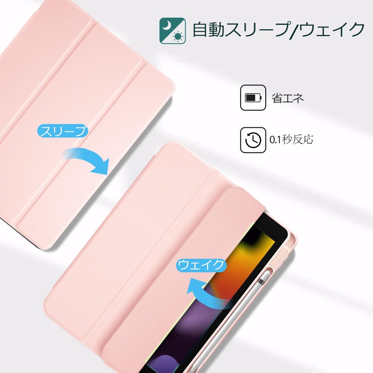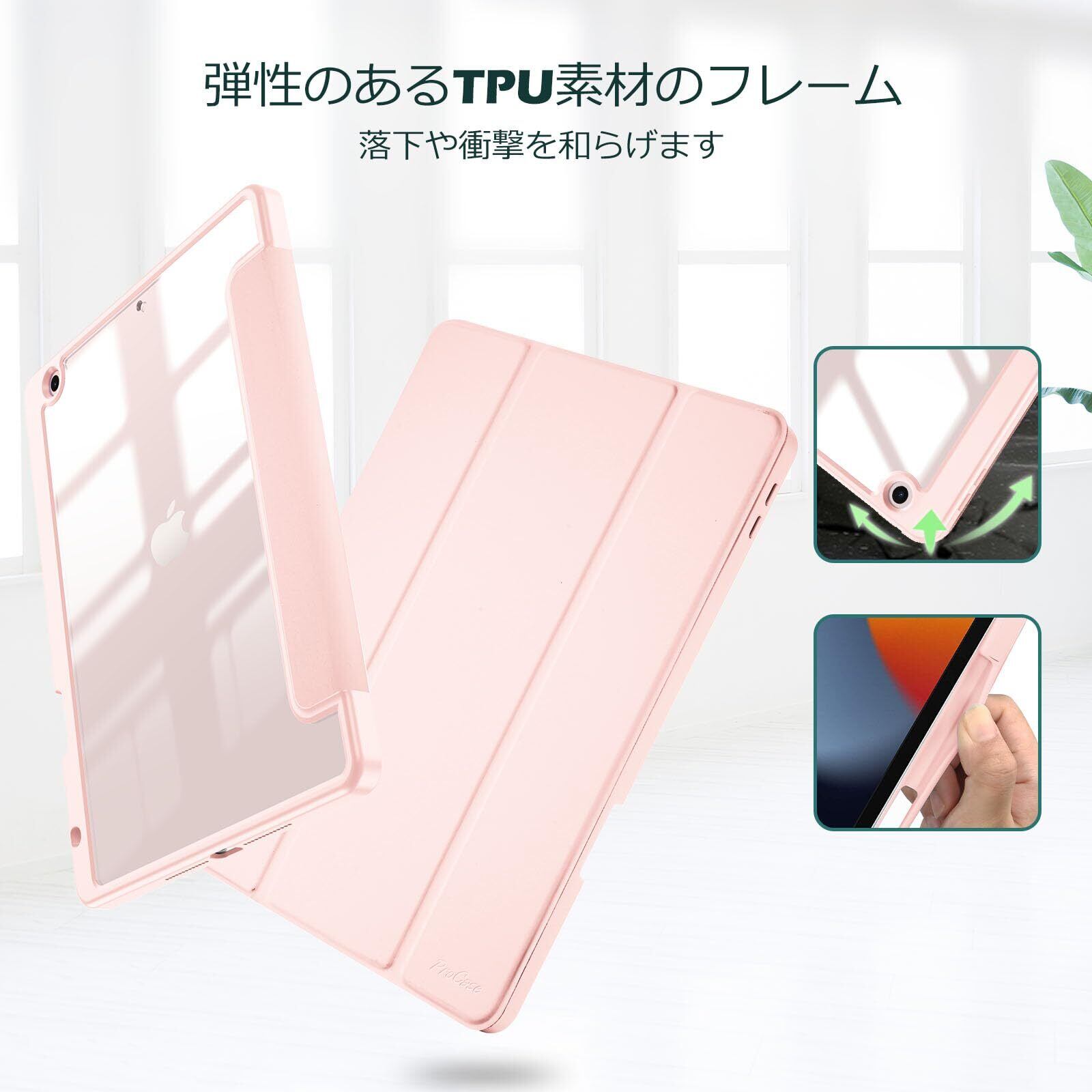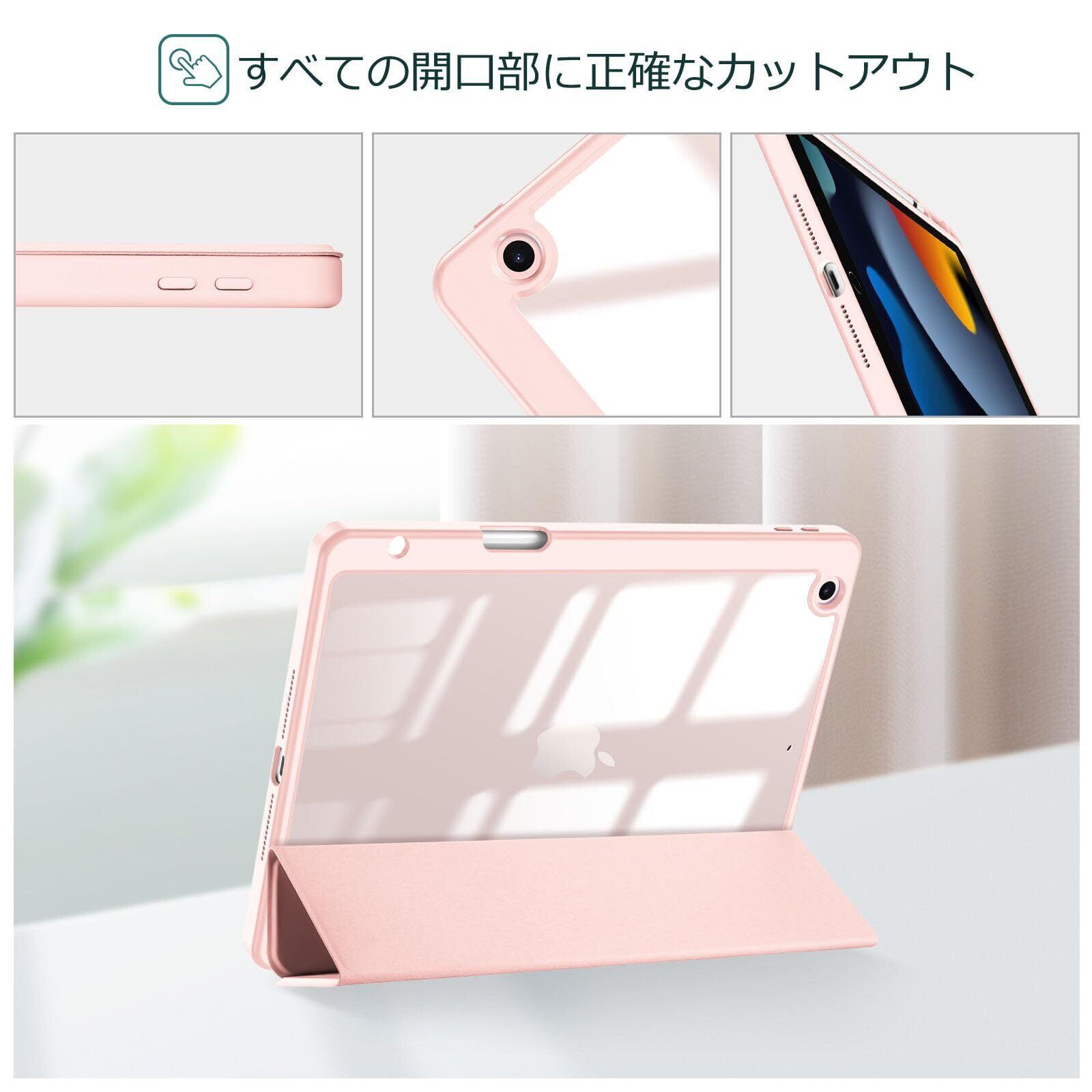透明のPCバックカバーはアイコンを表示し、iPadを衝撃、指紋、引っかき傷から保護します。内蔵したマグネットにより、オートスリープ/ウェイクに対応します。