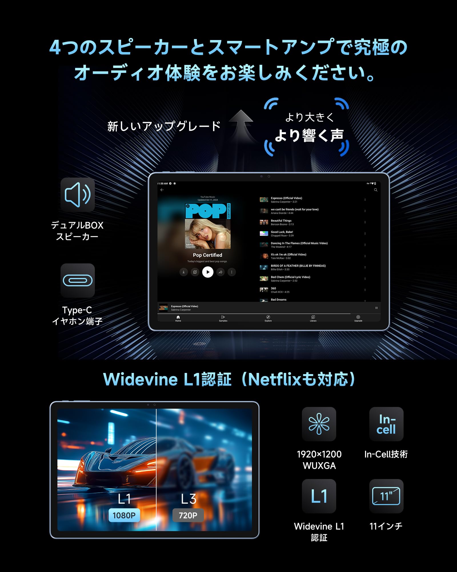 【Android 15搭載 × 90Hz高リフレッシュレート】 最新の Android 15 オペレーティング システムを搭載し、よりスマートでスムーズ、そして効率的なユーザー エクスペリエンスを実現します。90Hzの高リフレッシュレートで、滑らかな視覚体験を実現。どんな光条件下でも、鮮やかでクリアな画像をお楽しみいただけます。1200×1920ピクセルのWUXGA解像度を持つIPSインセル全貼合スクリーンを搭載し、450cd/㎡の明るさを誇ります。さらに、Widevine L1認証を取得しており、NetflixやYouTubeなどのプラットフォームで高画質のストリーミングをお楽しみいただけます。 驚くほどの高画質と完璧な再生パフォーマンスを体感してください!