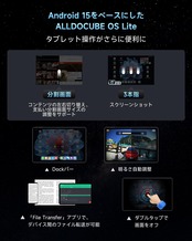 ✨【ALLDOCUBE OS Lite、初心者でも簡単に使用】✨ ①スマートAndroidタブレット機能:自動輝度調整、サイドバー、画面をダブルタップしてオフにする機能(「設定」アプリで有効化が必要)。②「ジェスチャー操作」機能で直感的かつ効率的な操作が可能:画面分割したいアプリを画面左上隅に移動すると、画面分割が起動します(左右または上下に画面分割を切り替えたり、サイズを調整できます)。画面分割を使用するには、設定 → システム → ジェスチャー → ナビゲーションモードからジェスチャーナビゲーションを有効にする必要があります。三本指でスクリーンショットを取得。③ 「FFT」アプリを使用すれば、ファイルをスムーズに閲覧したり、デバイス間でデータを転送したりできます。④ ホーム画面のアイコンは5x6または4x6形式で配置可能で、形状を丸型や四角型に設定できます。また、フォルダサイズの調整やアイコンの自動整列にも対応しています。⑤ Google検索バーは削除可能。 ※ALLDOCUBE OS LiteとALLDOCUBE OS 3.0にはいくつかの違いがありますので、ご注意ください。