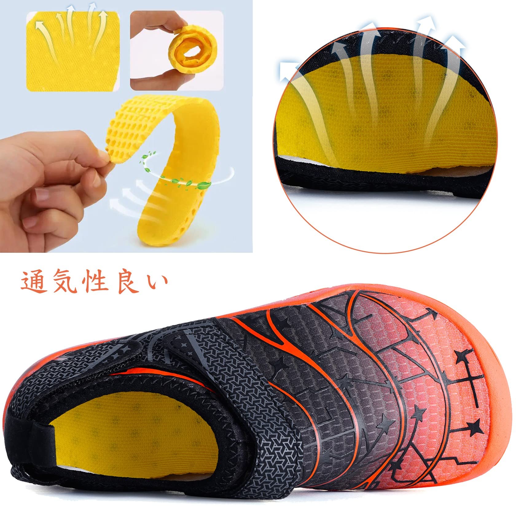 [ZUSERIS] マリンシューズ ウォーターシューズ キッズ 子供用 アクアシューズ ビーチサンダル シュノーケリング アウトドア 柔軟 通気 速乾 水用靴 携帯便利