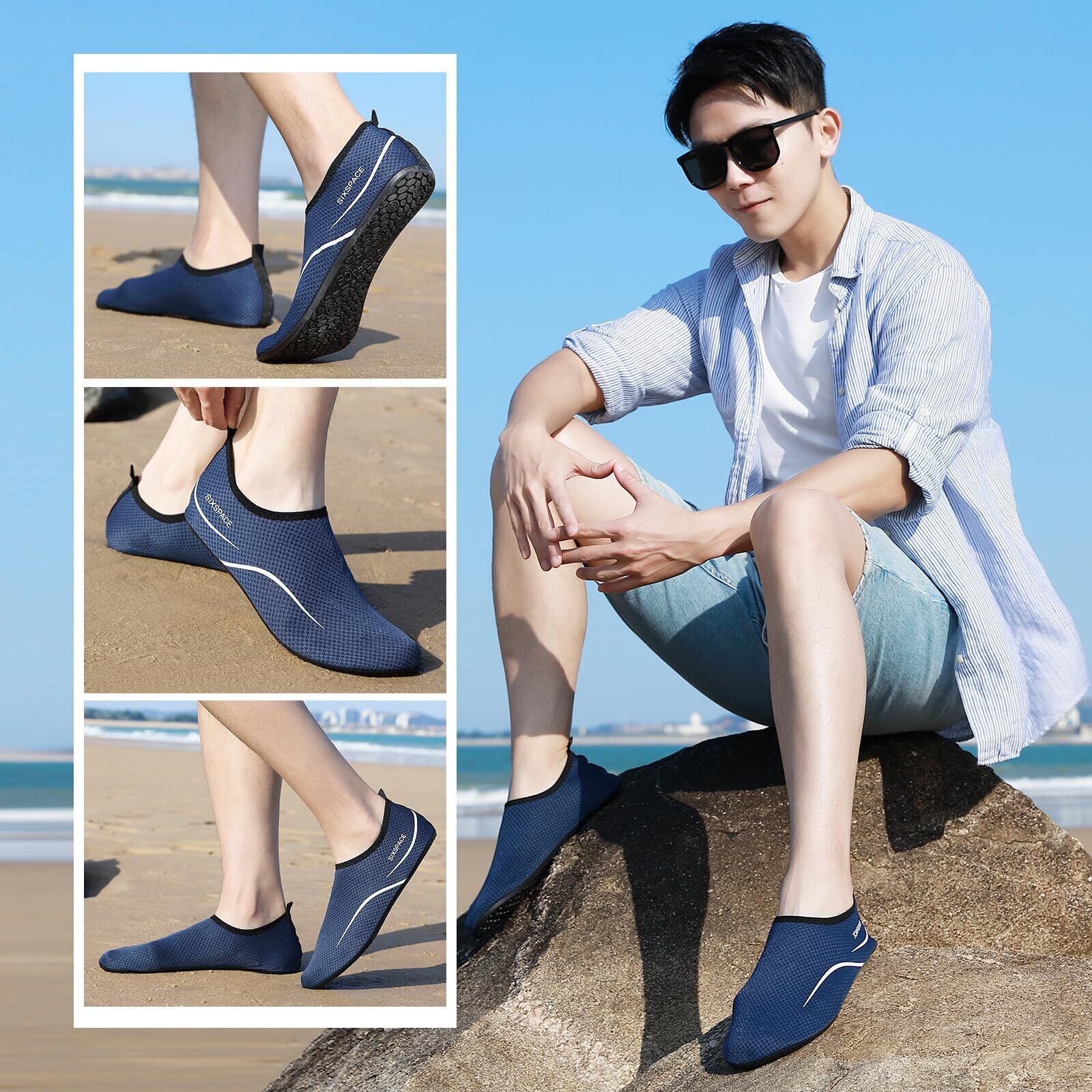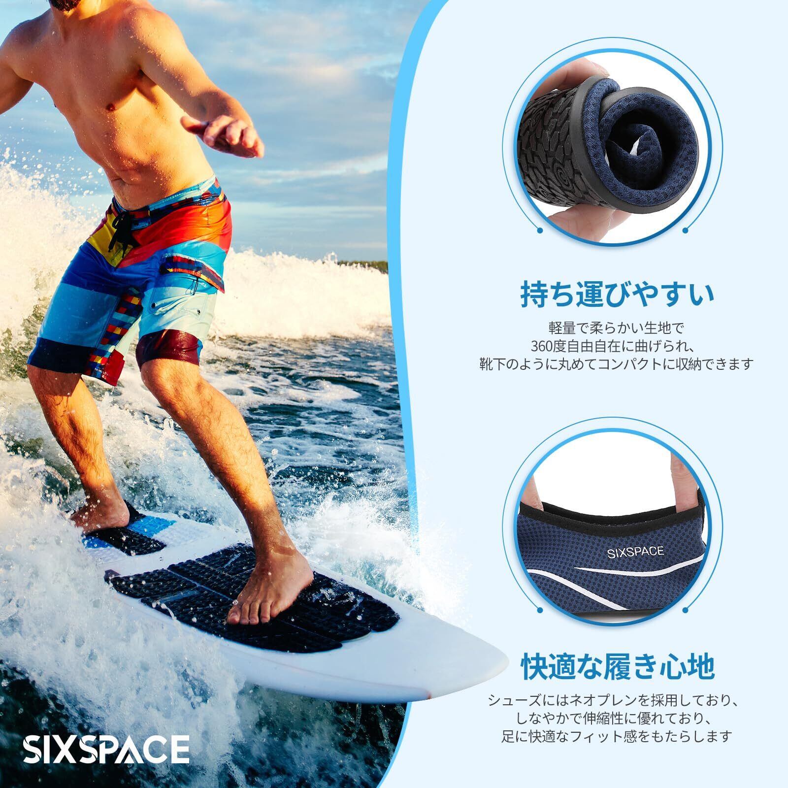 【特価セール】[SIXSPACE] マリンシューズ ウォーターシューズ 男女兼用 アクアシューズ フィットネスシューズ レディース メンズ 軽量 通気 滑り止 ヨガ サーフブーツ