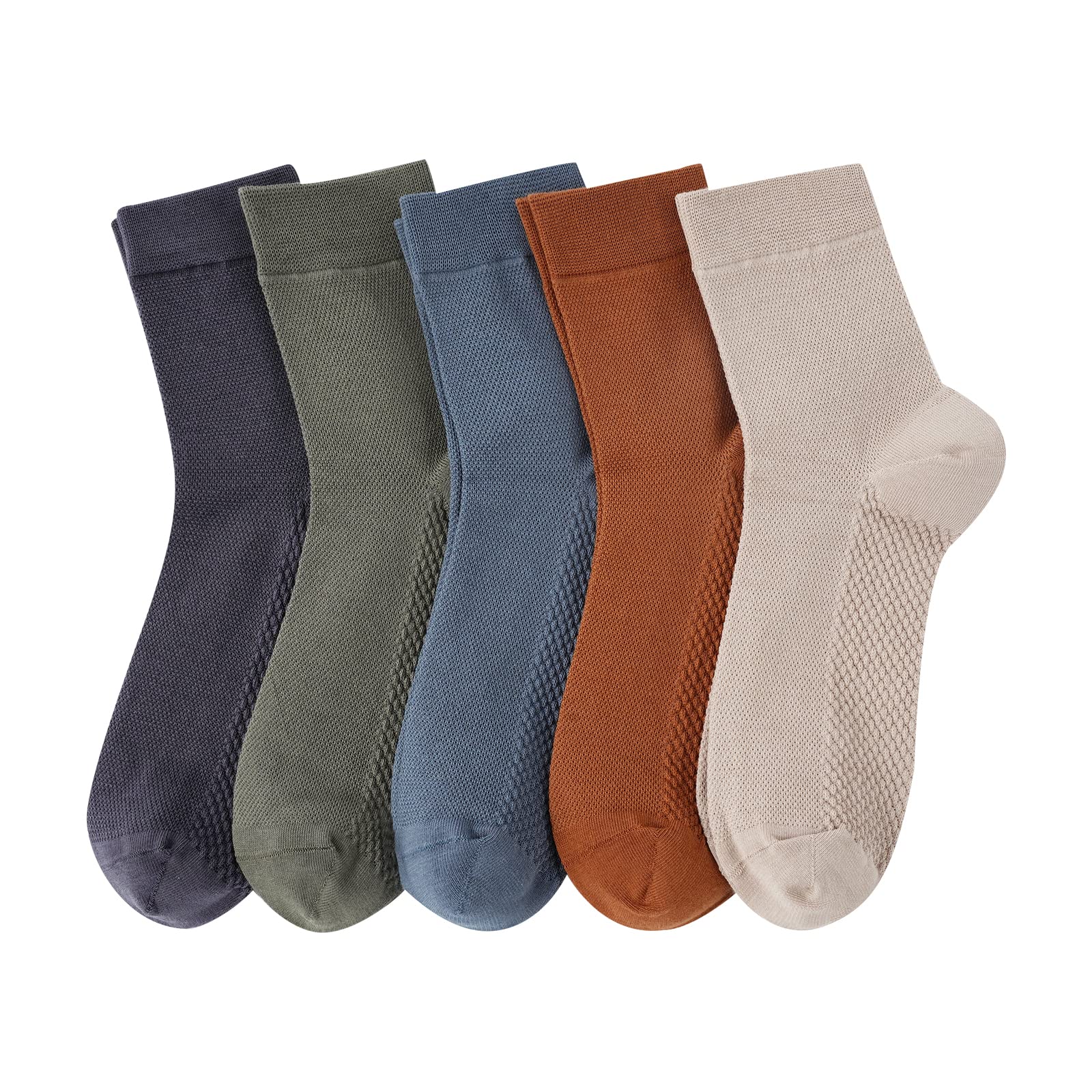 [Yazon] 靴下 メンズ 夏 メッシュ ビジネスソックス クルー丈 綿薄手 蒸れない 男性 紳士 カジュアル スポーツくつした おしゃれ 通気吸汗 夏用 涼しい靴下 24-27cm 登山 通勤 5足セット