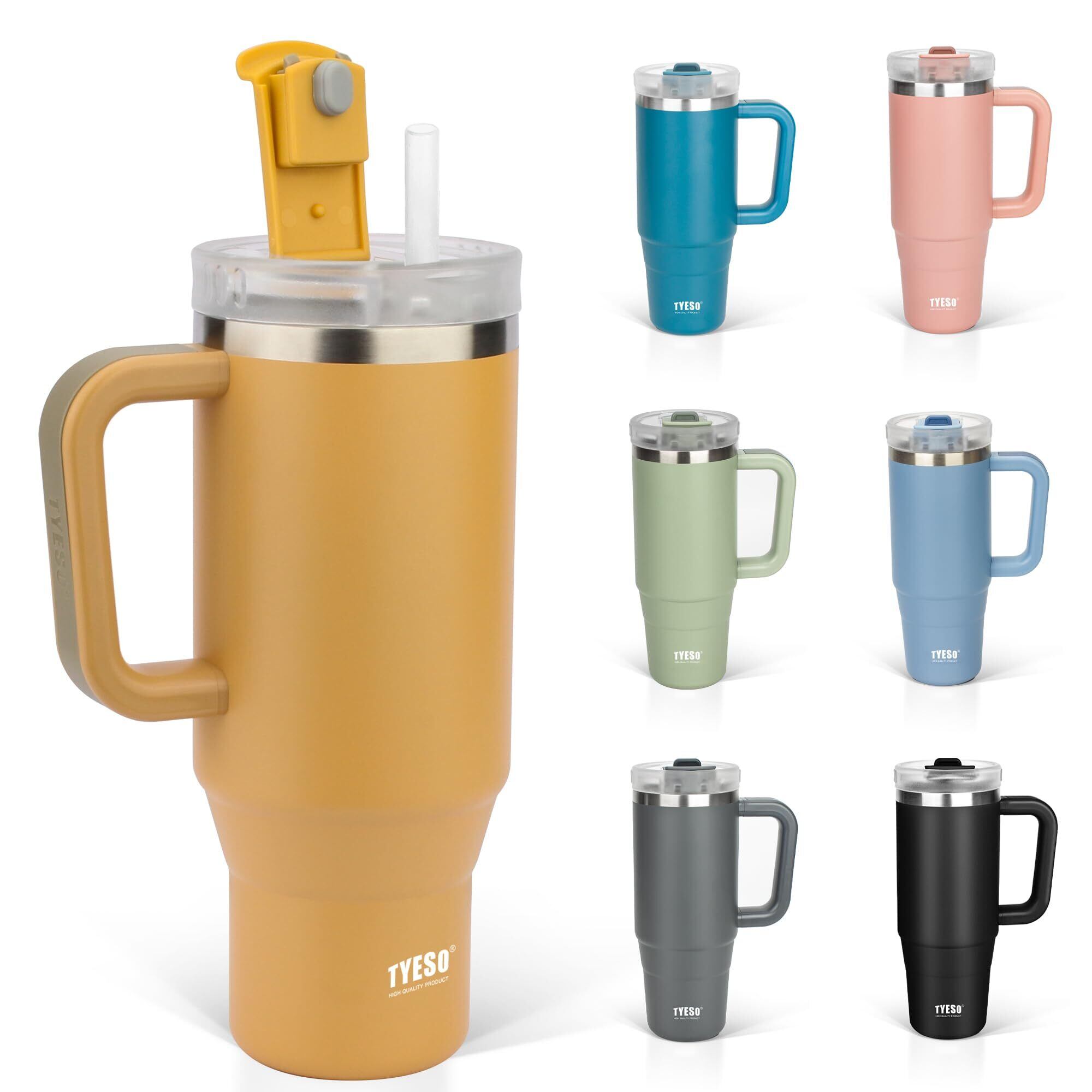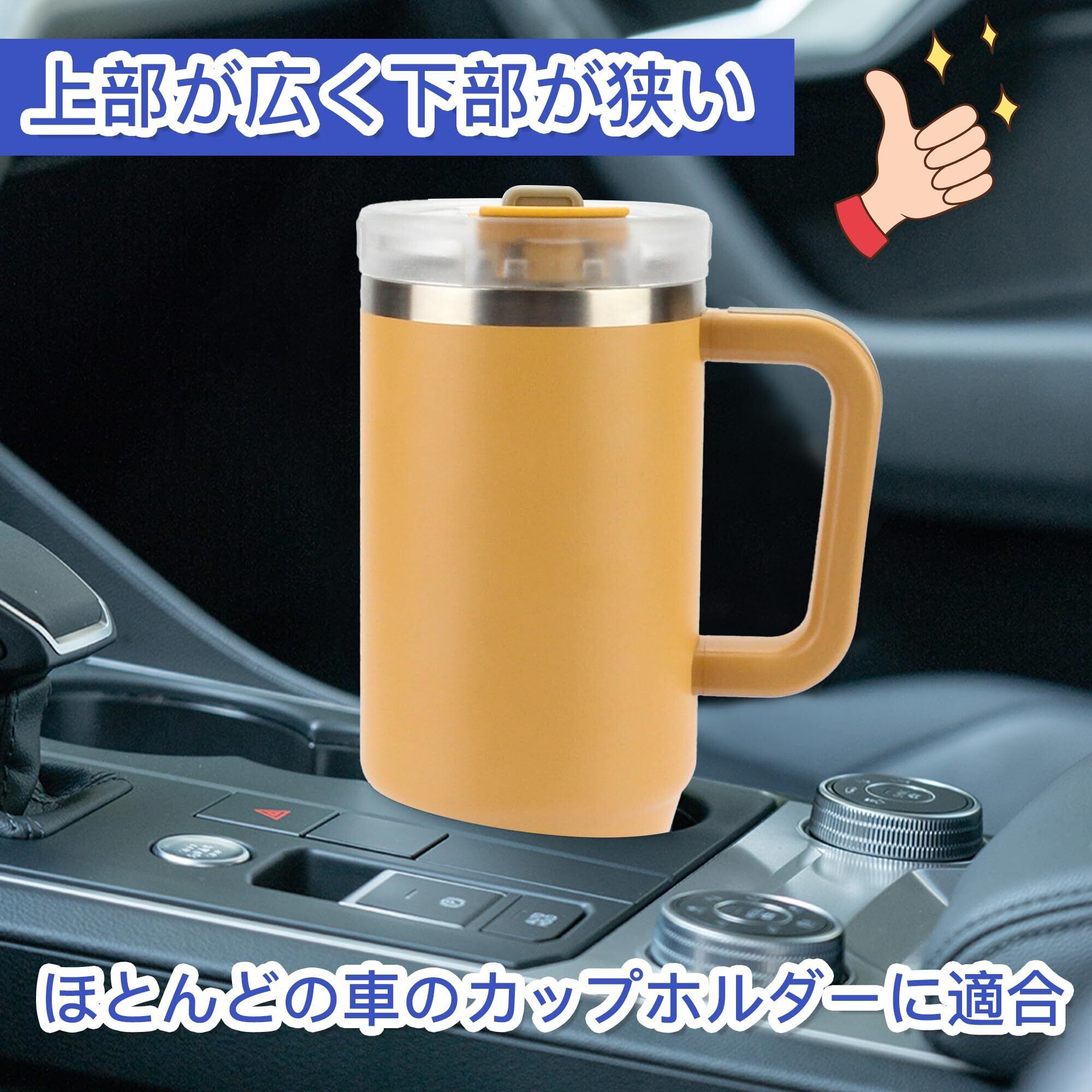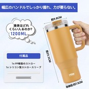 TYESO タンブラー 1.2L 水筒 保冷 ステンレスボトル ウォーターボトル ストロー 取っ手付き ジョッキ アウトドア 真空断熱 二重構造 広口 大容量 直飲 女の子 男の子 1200ml イエロー