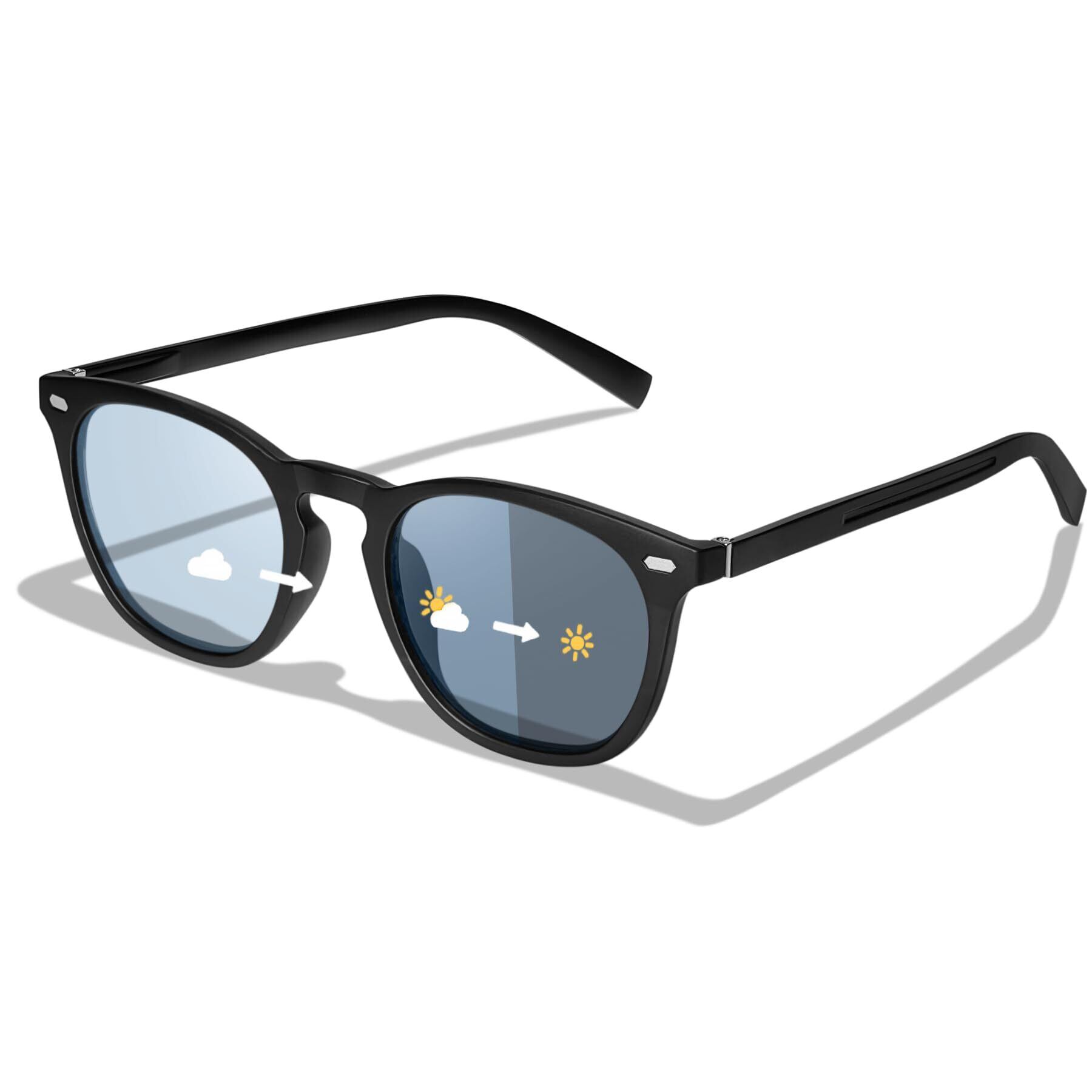 【調光機能レンズ】調光レンズが紫外線の強弱に応じて変化 レンズの色濃度を自動調整, 最適な視界を提供してくれます。ご注意:社内、室内、曇り空など紫外線の弱いでは変色調光が弱くなることを予めご了承ください。