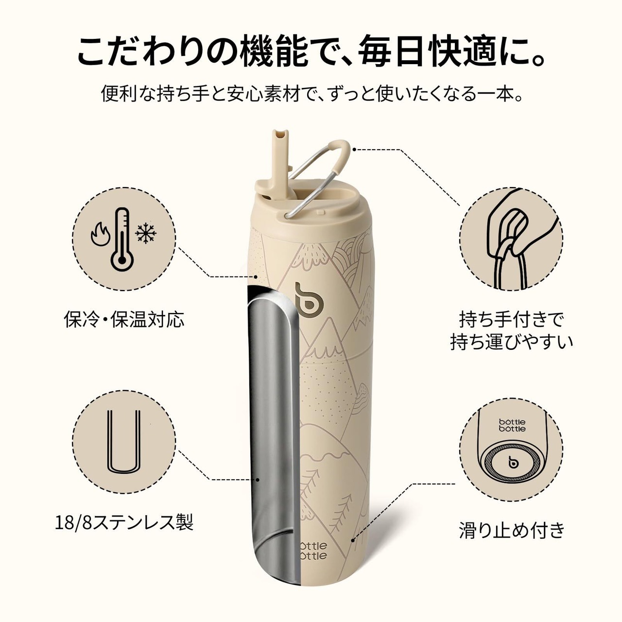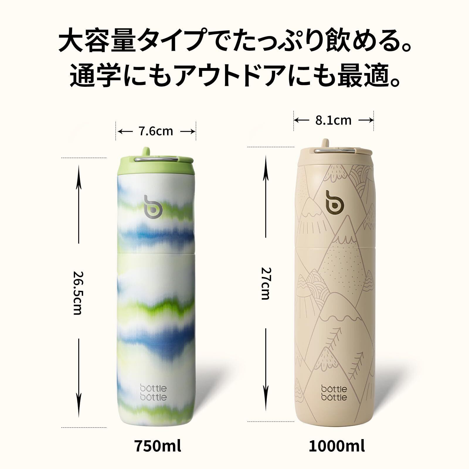 BOTTLE BOTTLE 水筒 1リットル 真空断熱 保温保冷 ステンレスボトル ストロー飲み おしゃれ 持ち手付き 漏れ防止 広口 1000ml スポーツボトル 男の子 女の子 大人 子供 水分補給 マウンテンヘイズ