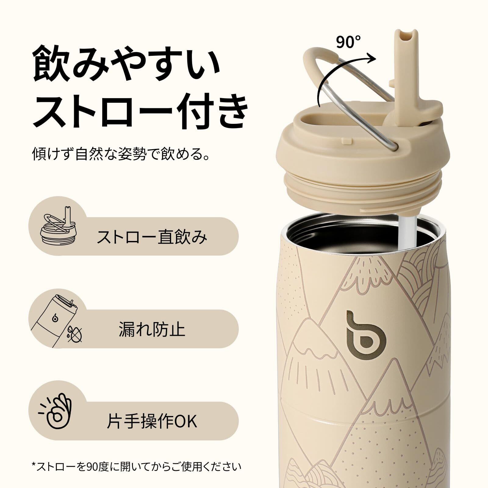 【ストロー付き飲み口|こぼれにくく便利】 ストローでそのまま飲める仕様だから、移動中や作業中にも片手でスムーズに水分補給。お子さまにも安心してお使いいただけます。
